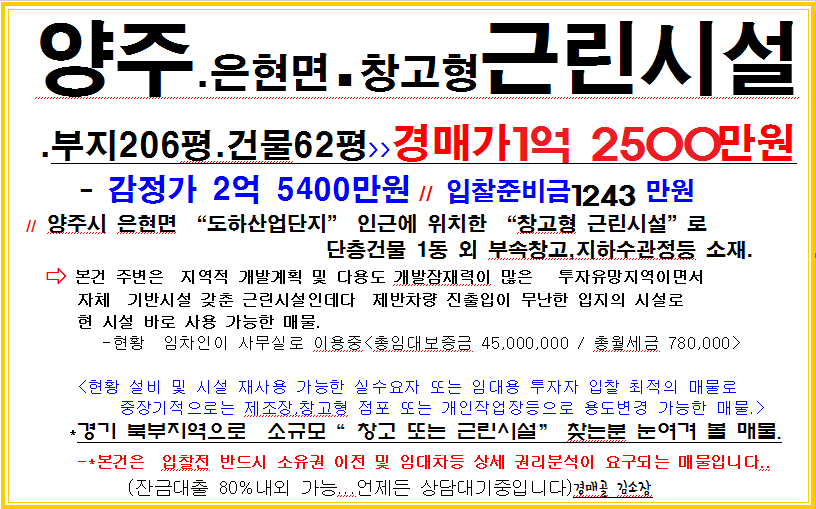 양주시<창고형"점포60평">은현면"다용도 근린시설"(1억2500만)1206-39435