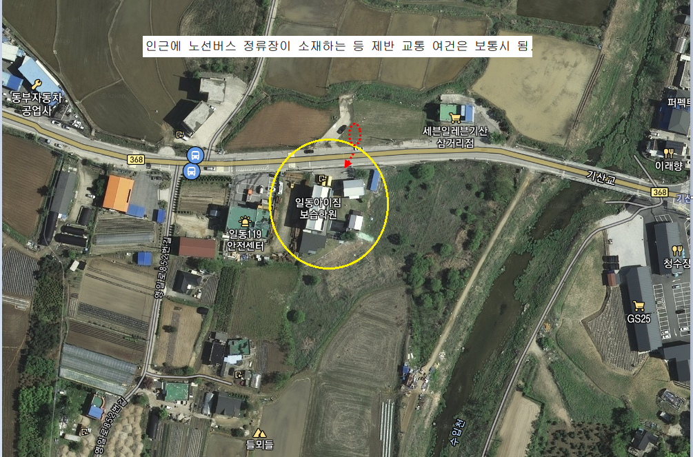 - 주위 일동면소재 및 근린시설,농경지,임야,주택등 혼재하는