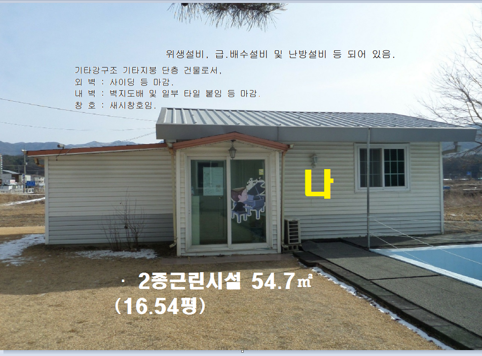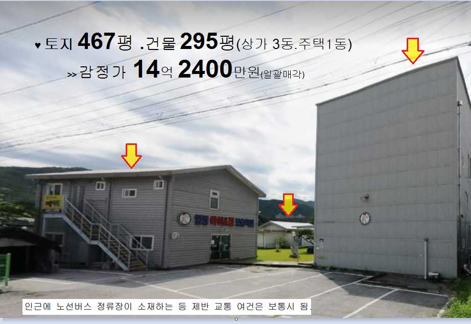 상가전용 건물3동과 주택 1동외 부속 주택,발코니,창고와 지하수 관정등 일괄매각사건