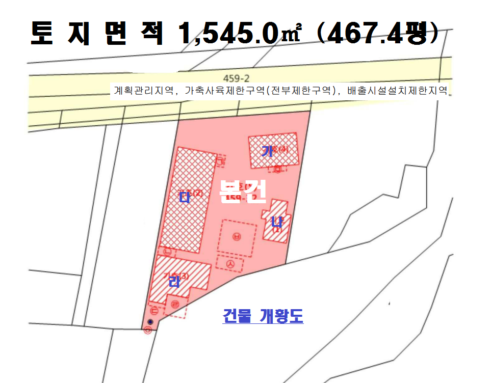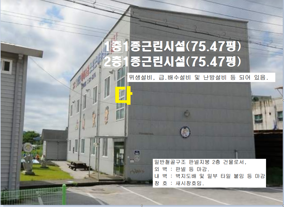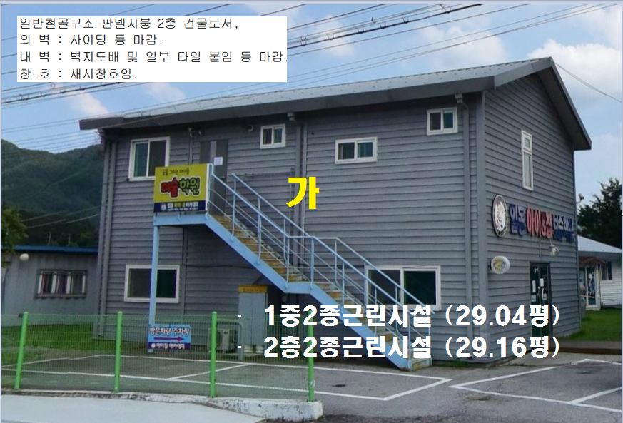 주변 면소재지내 공공편의시설,상가.주거시설등 이용 편리성등을 갖춘 건물로