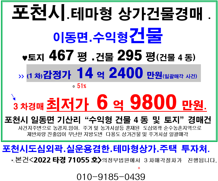 포천시 일동면 수익형 상가 및 주거용건물 경매.