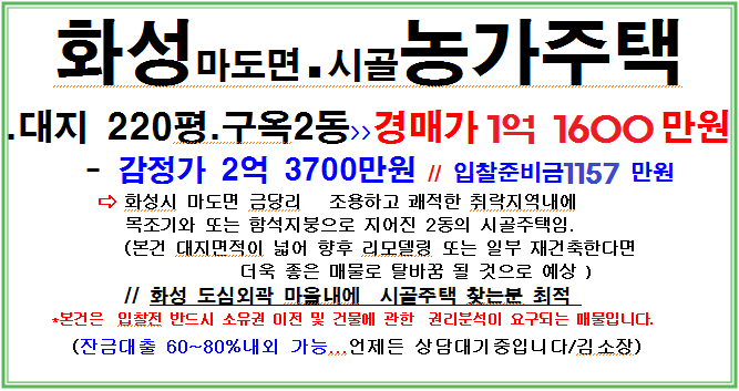 <화성시"농가주택">- 마도면 금당리"대지 220평"(1억1600만)401-1238