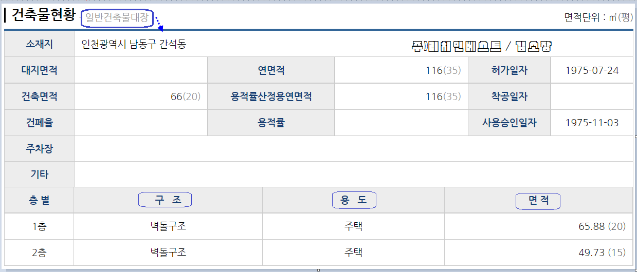 벽돌조슬래브지붕 지상2층구조 단독주택 1동외