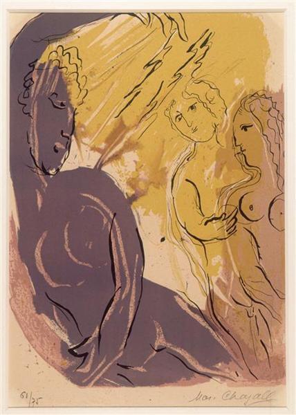 David and Bathsheba. 1956. lithography, paper. 26.5 x 35.8 cm. Series: Bible lithographs. Musée national Message Biblique Marc Chagall, Nice, France