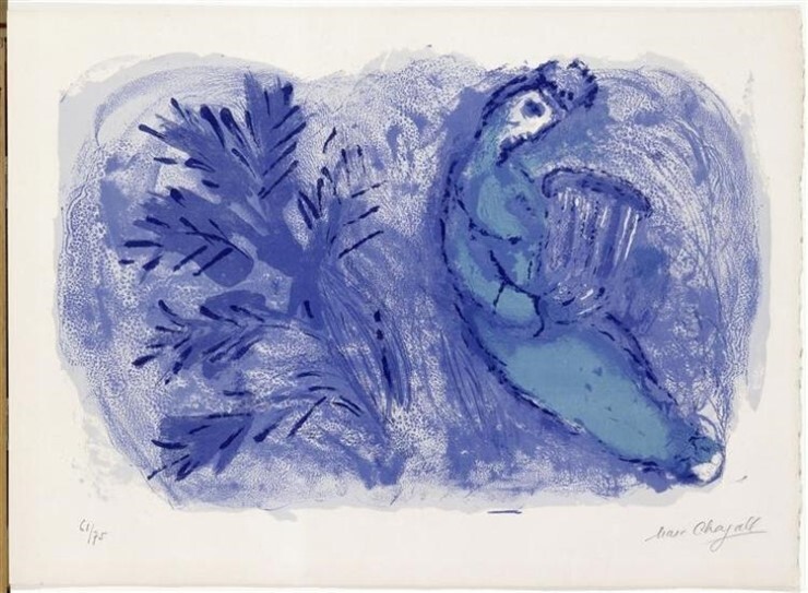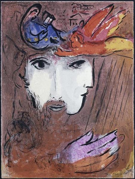 David. 1956. lithography, paper. 63.5 x 47.5 cm. Series: Bible lithographs. Musée national Message Biblique Marc Chagall, Nice, France
