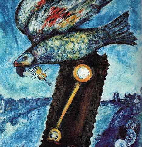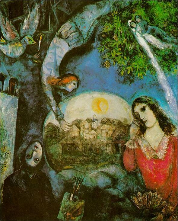 마르크 샤갈의 그림들은 제멋대로 배치된 듯한 사람과 사물, 선명하면서도 부드러운 색채로 환상적인 느낌을 자아낸다. 하지만 그의 그림에는 일견 아이들의 그림처럼 귀여운 느낌을 주는 시각적 은유의 한편에 항상 애잔함과 그리움이 배어 있다. 고단했던 샤갈의 체험과 거기서 비롯된 끝없는 갈망이 그림 속에 형상화되어서, 사랑과 평화가 그의 주된 모티프로 자리 잡았다. 유대계 러시아인이었던 샤갈은 두 번의 전쟁을 피해 여러 곳을 떠돌아다녔는데, 이런 경험과 고통은 전쟁의 공포, 폭력을 순화시키려는 염원으로 화폭에 자주 표현되었다.