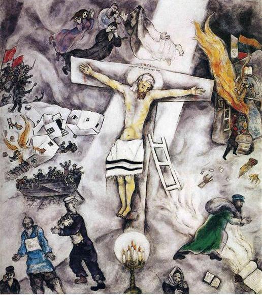 샤갈은 유대교 신자로서는 드물게 그리스도를 잘 이해했는데, 이는 쟈크 마리땡과 같은 천주교 신자 친구들 덕분이었다.샤갈의 “백색의 십자가”는 기존에 예수님을 박해하던 유대인이 아니라, 피해자로서의 유대인을 그리고 있다. 샤갈은 1938년 11월 9일에 일어난 유대인 인종청소 사건, 일명 “깨진 유리의 밤”을 그리고 있다.