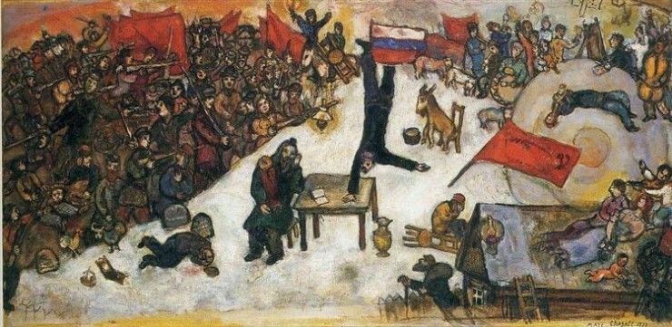 샤갈이 태어난 1887년 현대 세계의 급박한 흐름은 러시아 비테프스크(Vitebsk)에는 전혀 영향을 미치지 않았고, 그 도시의 하시디즘(Hasidism) 유대인들은 세상이 그들을 피해가는 것에 만족했다. 그들은 유대인이라는 이유로 학살과 탄압을 당하느니 눈에 띄지 않은 곳에 사는 것이 낫다고 생각했었다.