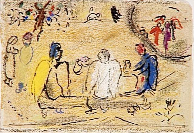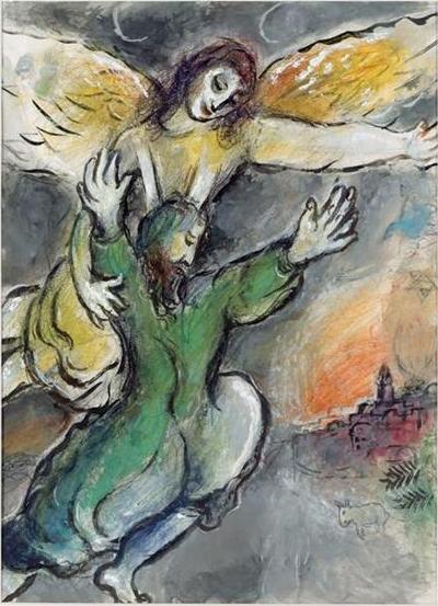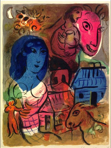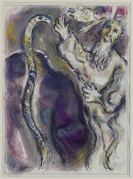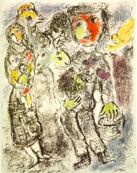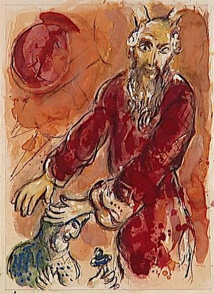 1985년 97세의 나이로 사망한 샤갈은 그의 긴 인생만큼 다양한 주제의 수많은 작품들을 남겼다. 그 중 ‘성서’와 ‘서커스’에 대한 두 가지 주제는 샤갈의 작품의 주축을 이루고 있다. ‘성서’에 대한 그의 관심은 유태인이라는 태생적 이유와 당시 유명했던 화상(畵商) 앙브루아즈 볼라르(Ambroise Vollard)의 영향이 크게 작용했다. 출판사를 운영하던 볼라르는 라퐁텐의『우화집』, 고골리의 『죽은 영혼』에 이어 『성서』의 삽화를 샤갈에게 의뢰 했는데, 샤갈은 직접 팔레스타인 등지를 여행하며 작품을 위한 구상을 했다고 한다. 훗날 볼라르는 자신의 자서전에서 “작업량이 많았지만 화가는 지치지 않고 열과 성을 다해 작업 했다”라고 샤갈을 회상했다.