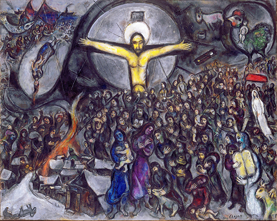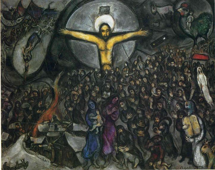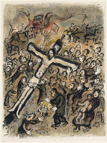 전쟁이 끝난지 20년이 지났으나 대전의 상처를 잊기에는 너무나 깊은 상처를 샤갈의 가슴에 남겼다. < 순교자>,<망집>에 이은 걸작이 새로 탄생되었다. 여기서 작가는 나찌의 손으로 600만의 유태인이 학살된 것을 상기시키고 있으며, 실은 로마제국의 군대에 의해 이스라엘의 마지막 거점인 마사다의 성채가 함락되면서부터 망국의 민족이된 동포의 2000년간에 걸친 수난의 모든것을 그리고 있다. 샤갈의 작품의 특징인 침략자는 한 사람도 그리지 않고, 거대한 암소로 희생을 상징화하여 끝이 잘게 째어진 묘선으로써 영원한 역사의 참극과 부조리를 화가가 고발하고 있다는 것을 알수있다. 이러한 연유로 전쟁화가 위대한 예술로 승화될 수 있는것이다