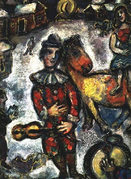 서커스에 대한 샤갈의 관심은 그가 유년시절에 보았던 집시의 광경과 성인이 되어서 관람한 서커스 공연, 그리고 미술가들에 의해 만들어진 연극들에서 받은 인상들에서 생겨난 것이다. 특히 이번에도 역시 화상 볼라르의 영향이 크게 작용했는데, 볼라르는 『성서』의 삽화에 이어 서커스 풍경들의 그림들을 그려보라고 샤갈에게 조언했다고 한다.