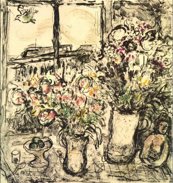 Flowers in front of window.1967. lithography. paper. 42.9 x 45.1cm .