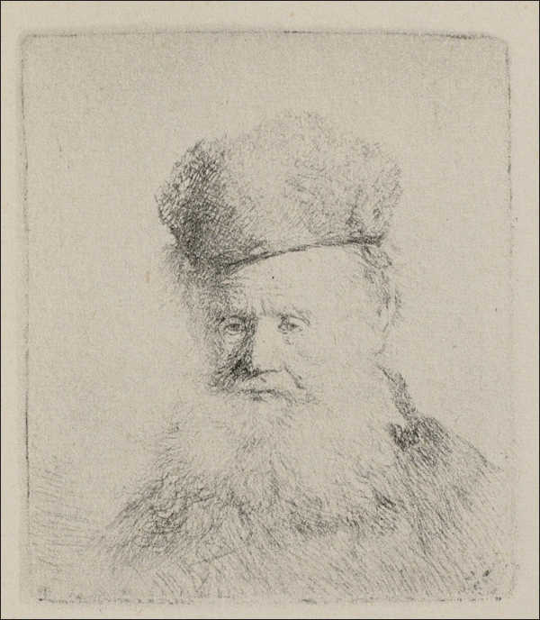 A Man with a Large Beard and a Low Fur Cap, 1631, 6 x 5 cm
