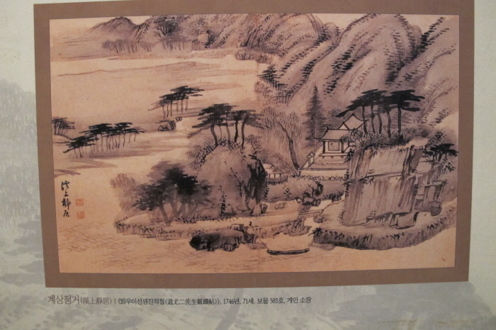 溪上靜居圖는 鄭敾이 退溪 李滉 生存時의 건물인 서당을 중심으로 주변山水를 담은