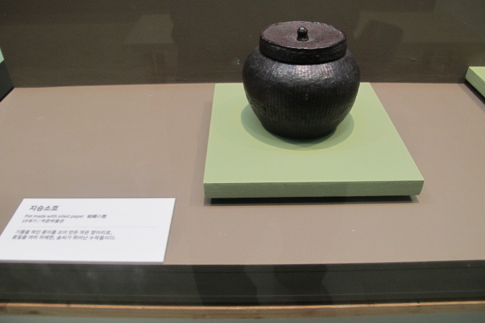 기름 먹인 종이를 꼬아 만든 작은 항아리로 여러 차례 옻칠을 했으며 솜씨가 뛰어난 秀作이다.