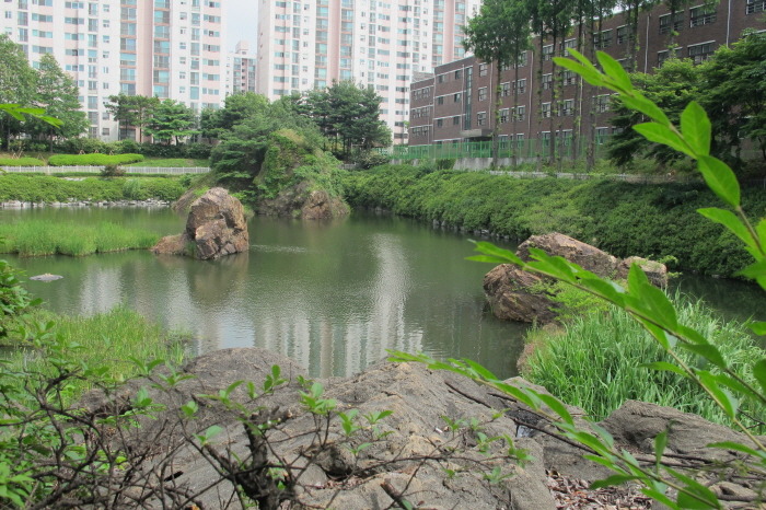 한강 일부가 메워져 구암공원 연못 안에 자리하게 되었다.