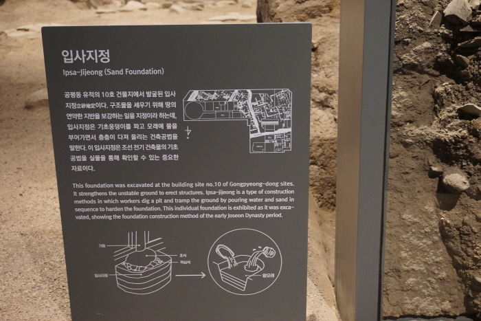 地面을 圓形으로 파고 모래를 채운 立砂獨立基礎가 남아있고 그 위로 積心石이 발견되었다.