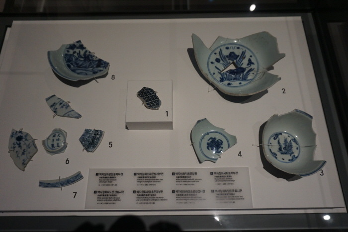 ① 白磁靑畵龍文 胴體部片 -16~17세기 -公平洞 42번지 出土 (*胴: 몸통 동)