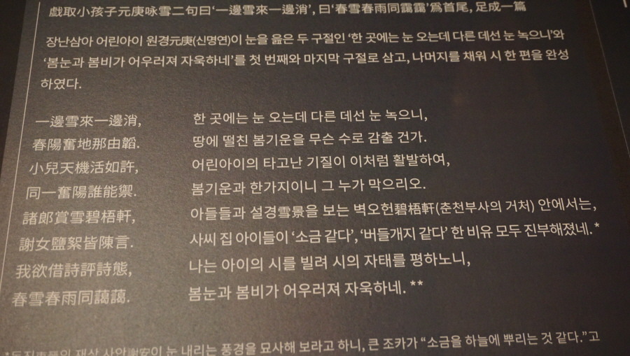 (희취 소해자원경 영설이구왈 ‘일변래설 일변소’), (*戱: 희롱할 희 *詠: 읊을 영)