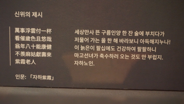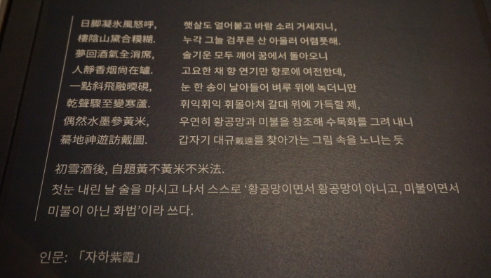 紫霞가 그림의 뜻과 세월의 無常함을 읊은 시를 餘白에 써 넣었다. 展示에는 先親에 이어