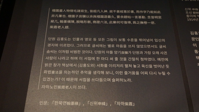 앞 世代의 大家를 기리는 序文을 남겼다. 紫霞는 金弘道가 그림으로 ‘入神의 境地’에
