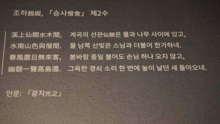 水南山色與僧閒(수남산색여승한)/물 남쪽 산 빛은 스님과 더불어 한가하네.