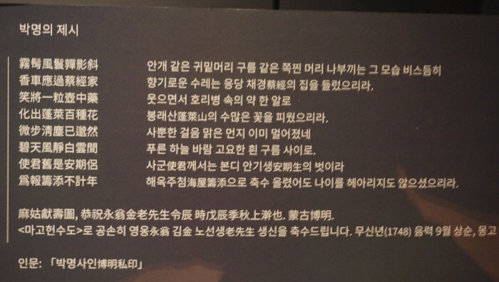 紫霞 申緯는 題畵詩를 지어 書畵를 평론하기도 했다. [長壽를 祝願하는 마고(麻姑獻壽圖)]는