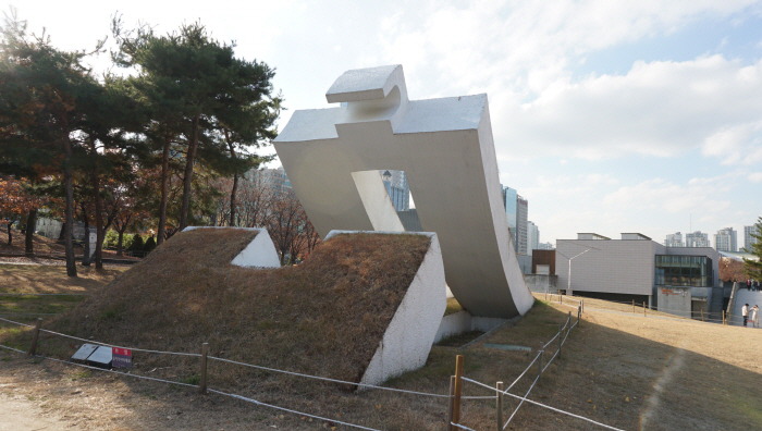 世宗大王에게 작품으로 敬意를 표한다. 南-北 軸이 남쪽의 公園 主道路와 북쪽 언덕의