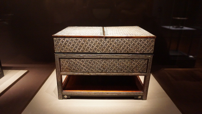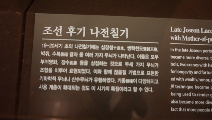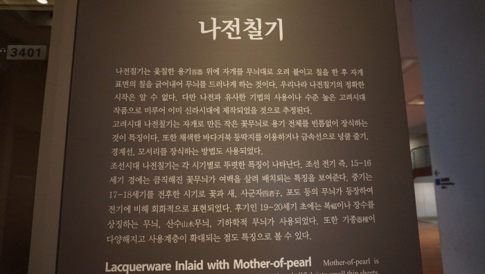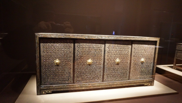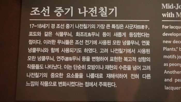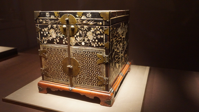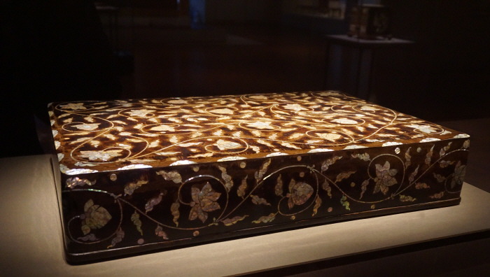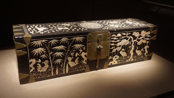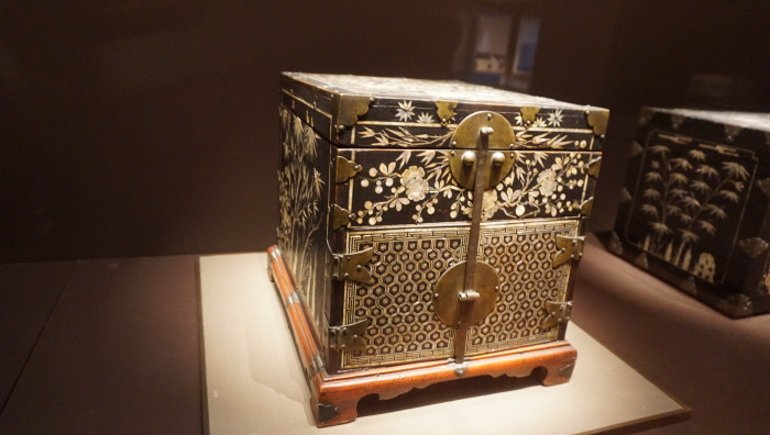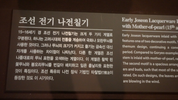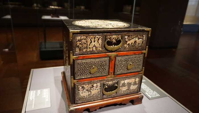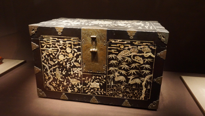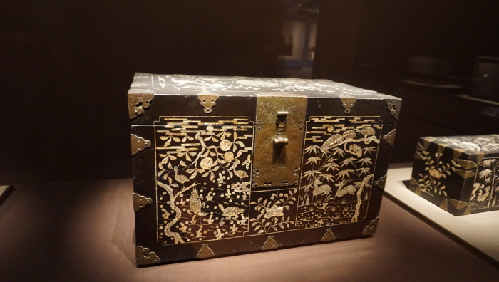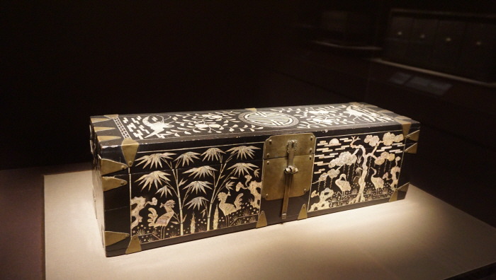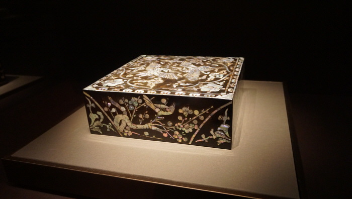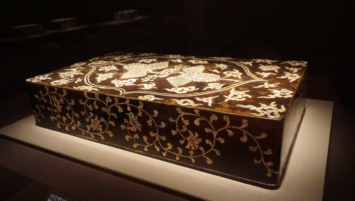 國立中央博物館 상설전시관 2층 204호실 木漆工藝室에서는 朝鮮의 螺鈿漆器를 전시하고 있다.