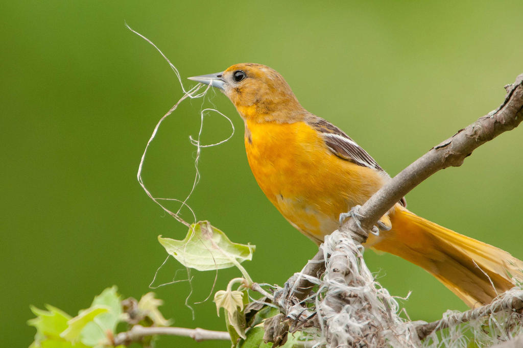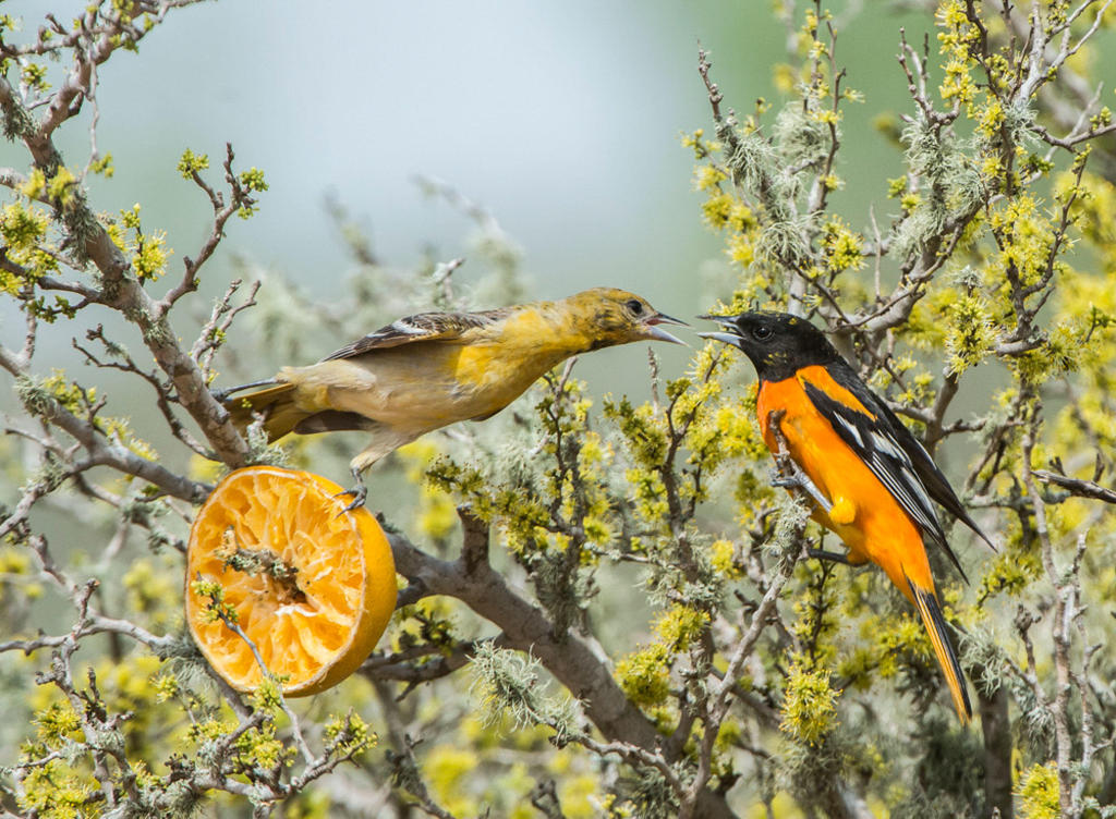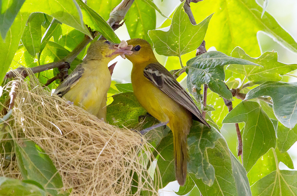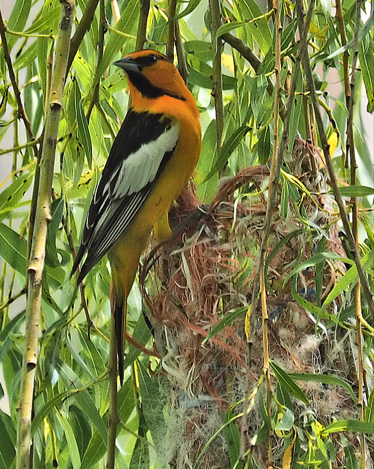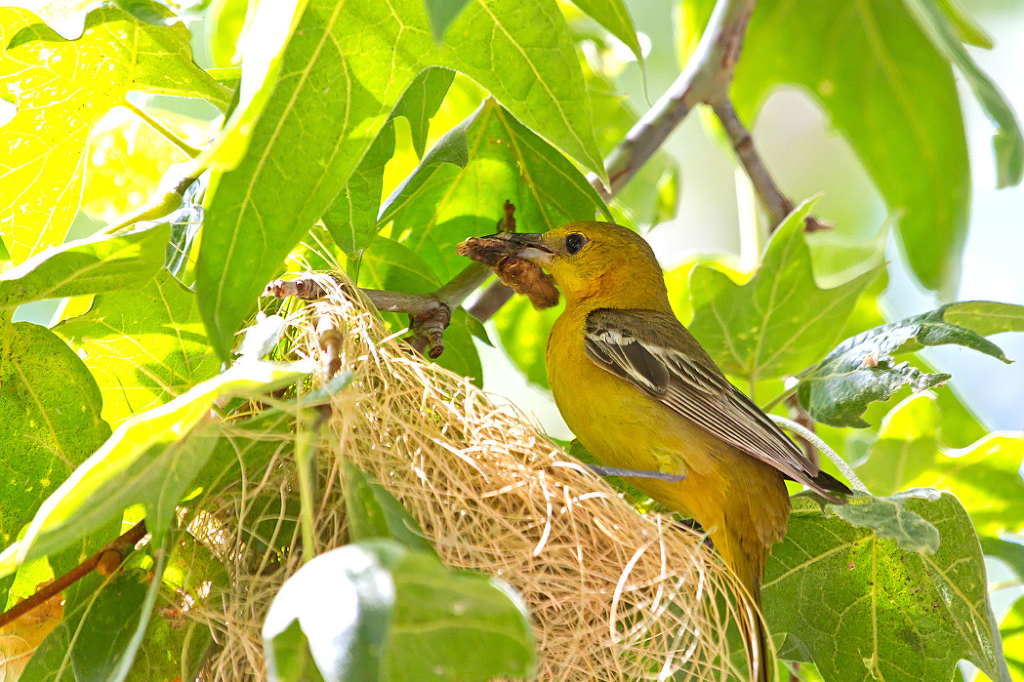 뉴욕 보트 하우스의 오듀본 센터 Audubon Center at the Boathouse, New York Louisiana Heron from 'Birds of America', engraved by Robert Havell (1793-1878) 1834 (coloured engraving) by John James Audubon(1785-1851) Trumpeter Swan. From "The Birds of America" Audubon, John James (1785~1851) 식물군 상(Plants for Birds) Winner: Michael Schulte 種(Species): 두건꾀꼬리(Hooded Oriole) 장소(Location): San Diego, California 촬영 비하인드 스토리 : 사진작가가 지난해 샌디에고로 이사 온 바로 자신의 뒤뜰 야자수 나무에 한 쌍의 꾀 꼬리가 자주 드나드는 것을 알았다.번식기에 암컷이 둥지를 만들기 위해 야자 섬유를 직조하듯 모으는 것을 보고 순간을 포착한다. 야자잎을 섬유처럼 가늘게 뽑은 암컷의 숙련된 솜씨와 부지런한 노력에 빛나는 둥지 로 도심에서도 자연의 아름다움을 느낄 수 있는 장면을 감사하며 담은 사진이라고 한다. 버드 로어: 맑고 아름다운 울음을 우는 꾀꼬리 종은 지구상에 28종으로 알려져 있고 주로 열대지방에서 분 포하는 철새이다. 유라시아대륙에는 수 종이 분포하고 우리나라엔 단 한 종만이 철새로서 관찰된다.북미에 서 관찰된 두건 꾀꼬리는 3월이면 돌아오고 8월이면 따뜻한 남쪽으로 이동한다.두건꾀꼬리는 개울과 협곡 을 따라 그늘나무, 버드나무 야자나무 미루나무 등, 저지대의 개방된 숲에서 서식한다. 특별히 야자나무를 선호하고 둥지는 수평으로 뻗은 나뭇가지에 풀과 식물 섬유를 함께엮어 야자잎 아래 둥지를 꿰매고 고정한 다. 약 10cm 키의 둥지를 일이 주면 완성되고 아울러 자기 영역의 일정한 세력권도 갖는다. 꾀꼬리의 둥지는 가벼우면서도 튼튼한 구조로 다양한 재료를 사용한다. 길고도 강한 야자수 잎은 ( 가늘고 길게 뽑는다) 훌륭한 건축자재로서 꾀꼬리 최고의 둥지가 된다. 우리나라에서도 5월 초에 도래하여 번식하 며 9월 하순까지 관찰된다. 한배의 산란 수는 3~5개이고 포란 기간은 12~14일이다.일년에 2~3번 산란하 며 육추는 암수가 함께한다. 몸길이는 27cm이고 주로 곤충, 베리 종류, 과일과 벌모이통의 설탕물도 먹는 다. 특히 애벌레를 선호하고 딱정벌레 말벌 개미 등을 먹는다. 교외 및 도시공원이나 주택의 마당과 정원에 서는 종종 벌새 모이통을 방문하여 설탕물과 과즙을 먹고 마시는 것을 볼 수 있다. 이 공간을 통해 눈에 흔 히 익은 5종의 꾀꼬리를 살펴 볼까한다. 두건꼬꼬리 수컷 성체(Hooded Oriole adult male .) Photo: Rob Curtis/VIREO 두건꾀고리 암컷 성체(Hooded Oriole adult female) , Photo: Joe Fuhrman/VIREO 두건꾀꼬리 암컷 성체(Hooded Oriole adult female) Photo: Bob Steele/VIREO Hooded Oriole (female) Nest Building - Day three (두건꾀꼬리 암컷이 짓고 있는 3일된 둥지) 두건꾀꼬리 암컷이 짓고 있는 3일 된 둥지. 수컷은 번식기에 암컷의 주변을 맴돌고 짝이 된 암컷에게 둥지의 재료를 공급하는 데 도움을 주나 둥지는 암컷의 기술로서 완성된다. 조류가 산란할 때 동시에 다 하는 것이 아닌 두세 차례 나누어서도 한다. 두건 꾀꼬리가 두 개 알을 낳은 이틀 후 두 개의 알을 더 낳은 사진이다. 둥지의 크기는 최대 7개의 알을 산란할 수 있다. Hooded Oriole babies hatched (병아리가 부화하고) They are all beak! 부리밖에 안 보이고, 어떻게 눈을 떴는지 예쁜 4마리의 두건 꾀꼬리가 배가 고픈지 먹을 걸 달라는 본능적 삶의 첫 단계 엄마는 잠시 후 서둘러 4마리 새끼를 먹일 음식을 나른다. Female Hooded Orioles at nest Hooded Oriole Mom feeding Nestling, Mama comes with a tasty morsel. 어미 꾀꼬리가 맛있는 한 조각 음식을 새끼에게 먹인다. Two Hooded Oriole Nestlings.(두 마리의 새끼가 날갯짓을 위한 준비를 하고 있다.) 두건꾀꼬리가 둥지 떠날 준비를 하고. Hooded Oriole Fledglings Hey, this is great! Come on out!! You can do it, too!! 볼티모어 오리올(Baltimore Oriole) 볼티모어 오리올 (Baltimore Oriole)은 역사적으로 새의 삼림 지대와 개방된 강기슭 숲과 도시공원, 한적한 교외 에 잘 적응해왔다. 이 적응성으로 수컷 성체의 밝은 주황색과 검은 색의 착색, 깨끗하고 온화한 노래, 신중하게 늘어진 둥지 이 모든 것들은 서식처부근 거주하는 인간에게 가장 낯익고 친숙한 풍경으로 인식된 새 중 하나이다. 이種 볼티모어 꾀꼬리는 대개 일부일처제이다. 밝은 오렌지색 몸통과 검은 머리를 가진 중 간 크기 볼티모어 꾀꼬리 이름의 유래는 볼티모어 Charm City에서 직접 영감을 얻은 것이 아니고 메릴랜드 의 창립자인 볼티모어 경 가문의 상징적 색채가 검은 색과 오렌지색에 의해 지어진 이름이라고 한다. 아울 러 포도 젤리와 오렌지즙을 가장 좋아하는 조류이다. 볼티모어꾀꼬리 수컷 성체(Baltimore Oriole Adult male) Photo: Shari McCollough/Audubon Photography Awards 암컷 볼티모어꾀꼬리가 둥지를 만들기 위해 재료를 입에 물고 있다. A 볼티모어꾀고리 암,수 한쌍 Couple of Baltimore Oriole (maie & femaie) Photo: Jonne Wour / Audubon Photorahpy Awards 산란을 위해 열심히 둥지를 짜고 있는 암컷 볼티모어꾀꼬리 다양한 둥지재료를 암컷은 번식지 주변에서 즉시 구할 수 있는 제료를 선택하고, 식물에서 길고 강한 섬유질을 벗겨내어 둥지를 직조하고 완성할 때까지 재료를 구한 그 늪으로 되돌아가서 재료를 찾는다. 전체적 둥지를 완성하는데는 일이 주가 소요되며 건축은 언제