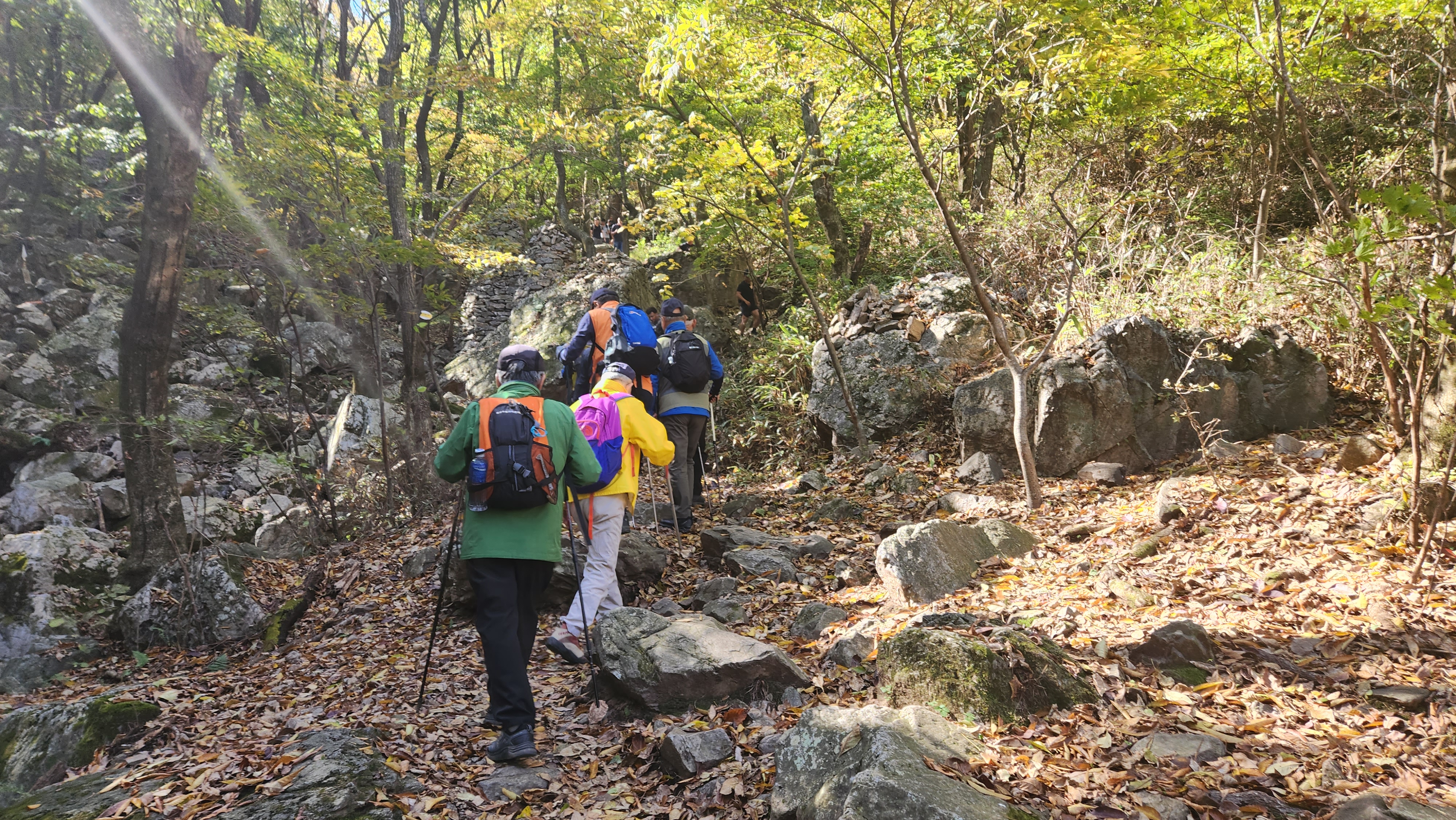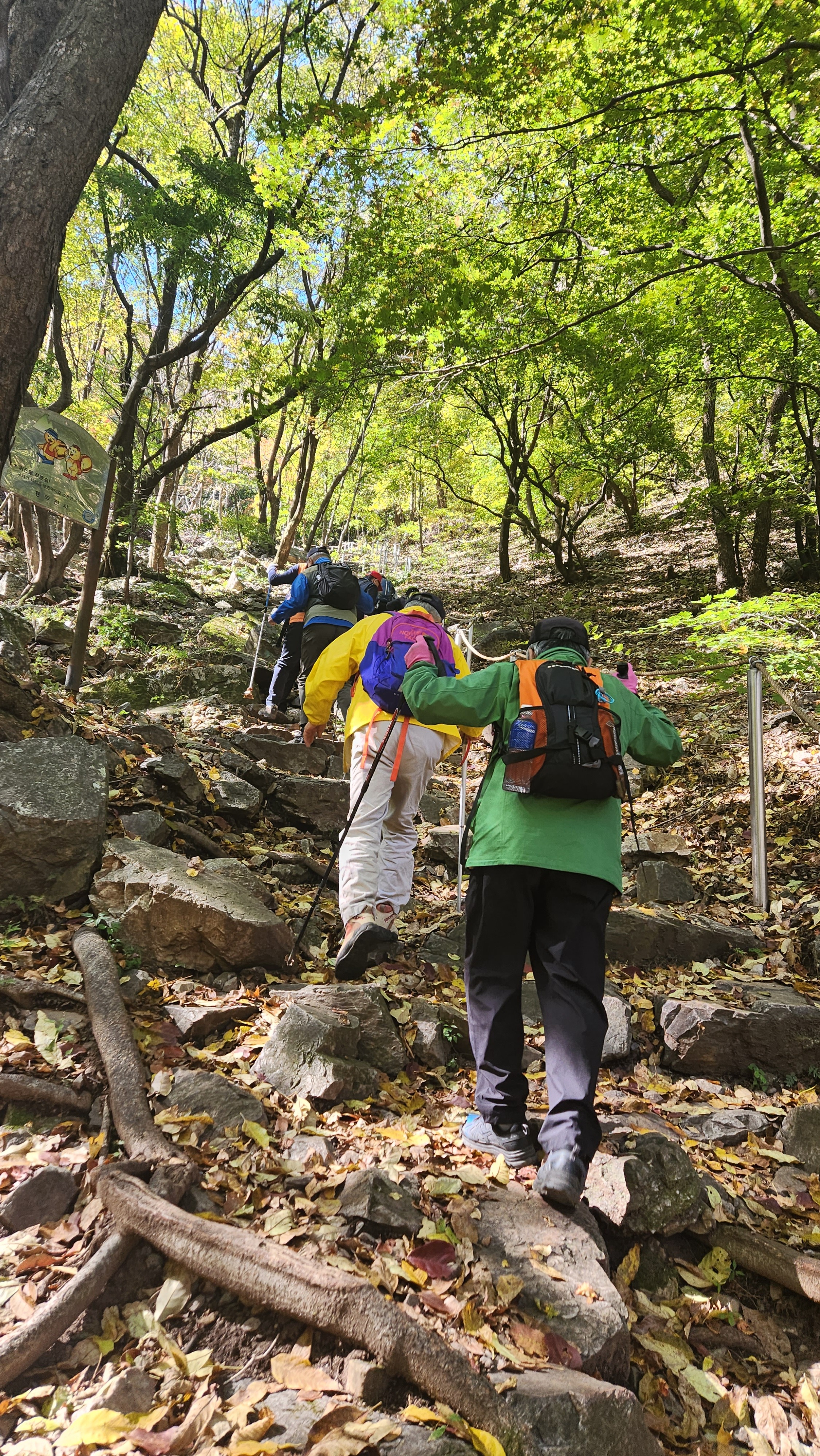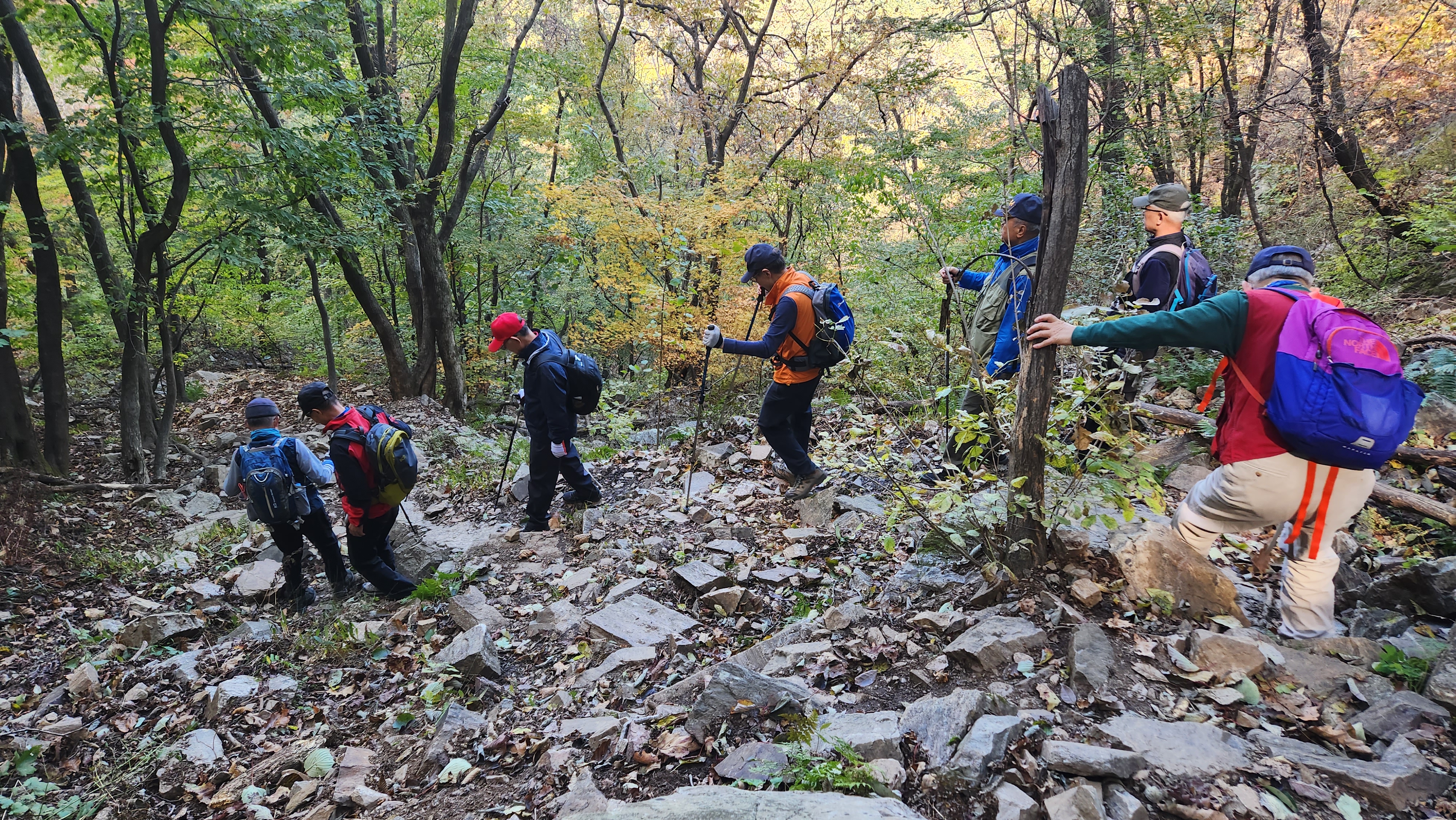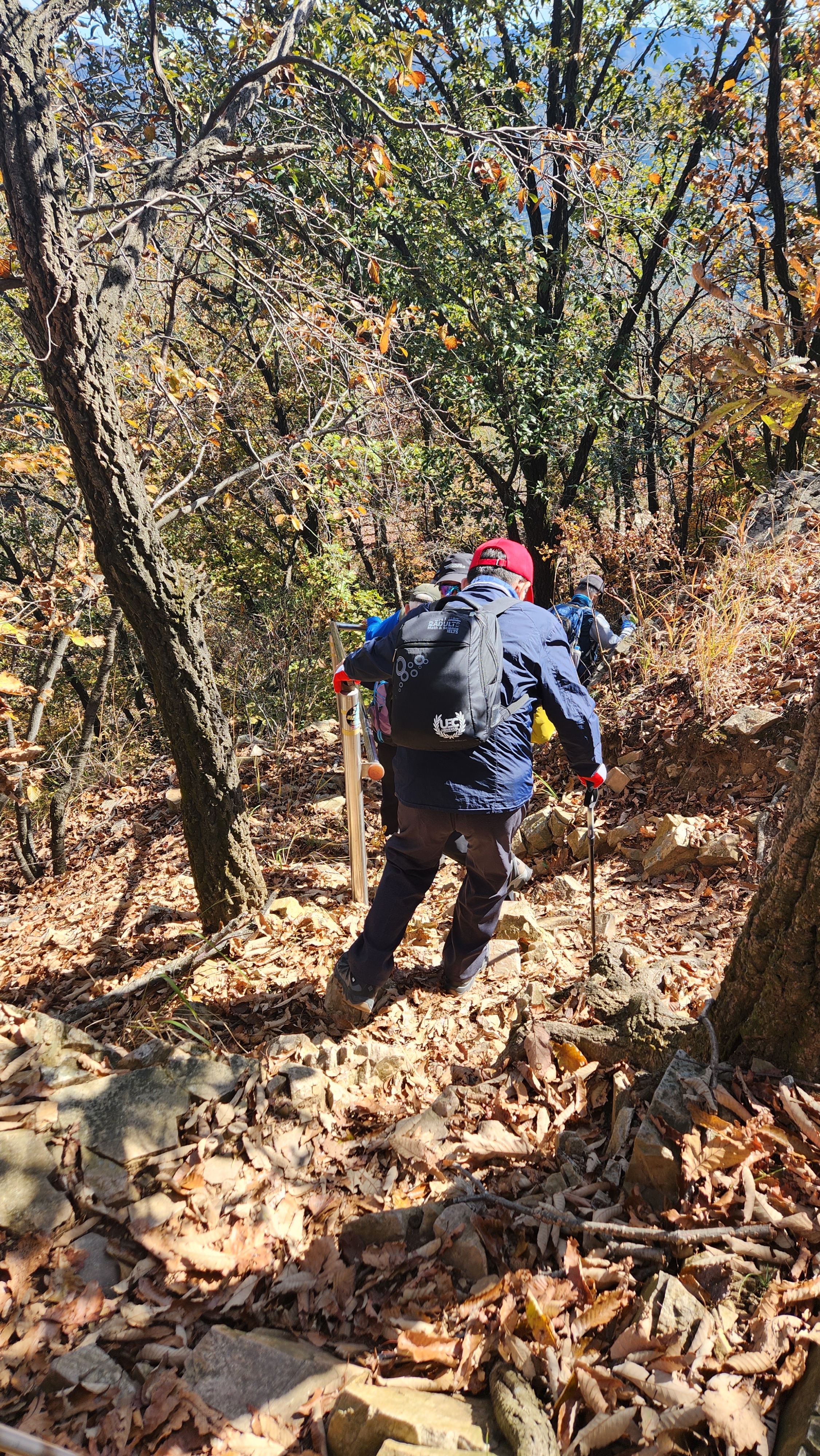 이찬철 동문은 성유경, 김홍찬 회장과는 인연이 깊다. 둘이서 반갑게 인사를 나누웠다. 이찬철 동문은 소요산 근처에 있는 처형의 밭(100평)에 사과나무 10그루를 자비로 심어주기 위해 이곳에 왔다고 하였다. 오늘 산행은 난이도가 높은 힘든 산행이었다. 그럼에도 불구하고 회원들은 힘든 내색없이 모두 밝은 표정들이었다. 단풍는 아직 소식이 없지만 내주 이후에는 화려한 색갈로 수놓을 것으로 보인다. 노년에 동기생들과 함께 여인동락하면 즐거움이 가득하고 행복이 배가된다. 대열동호회 중에서 가장 힘든 직책을 수행하고 있는 김홍찬 회장이 정말 자랑스럽고 존경스럽다.