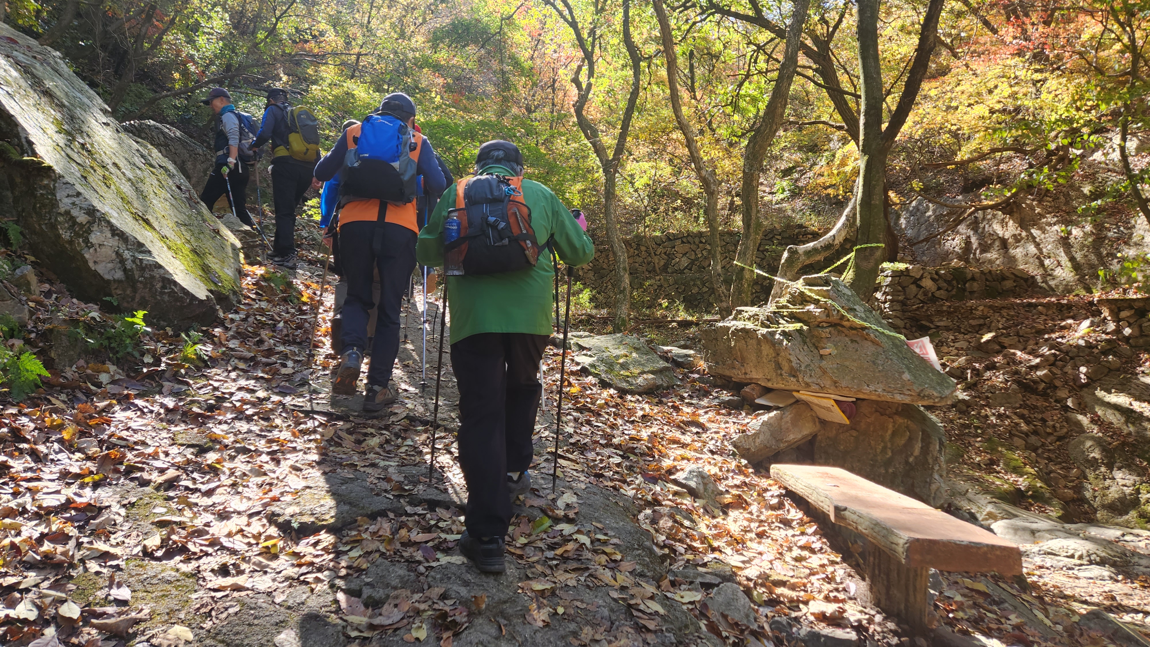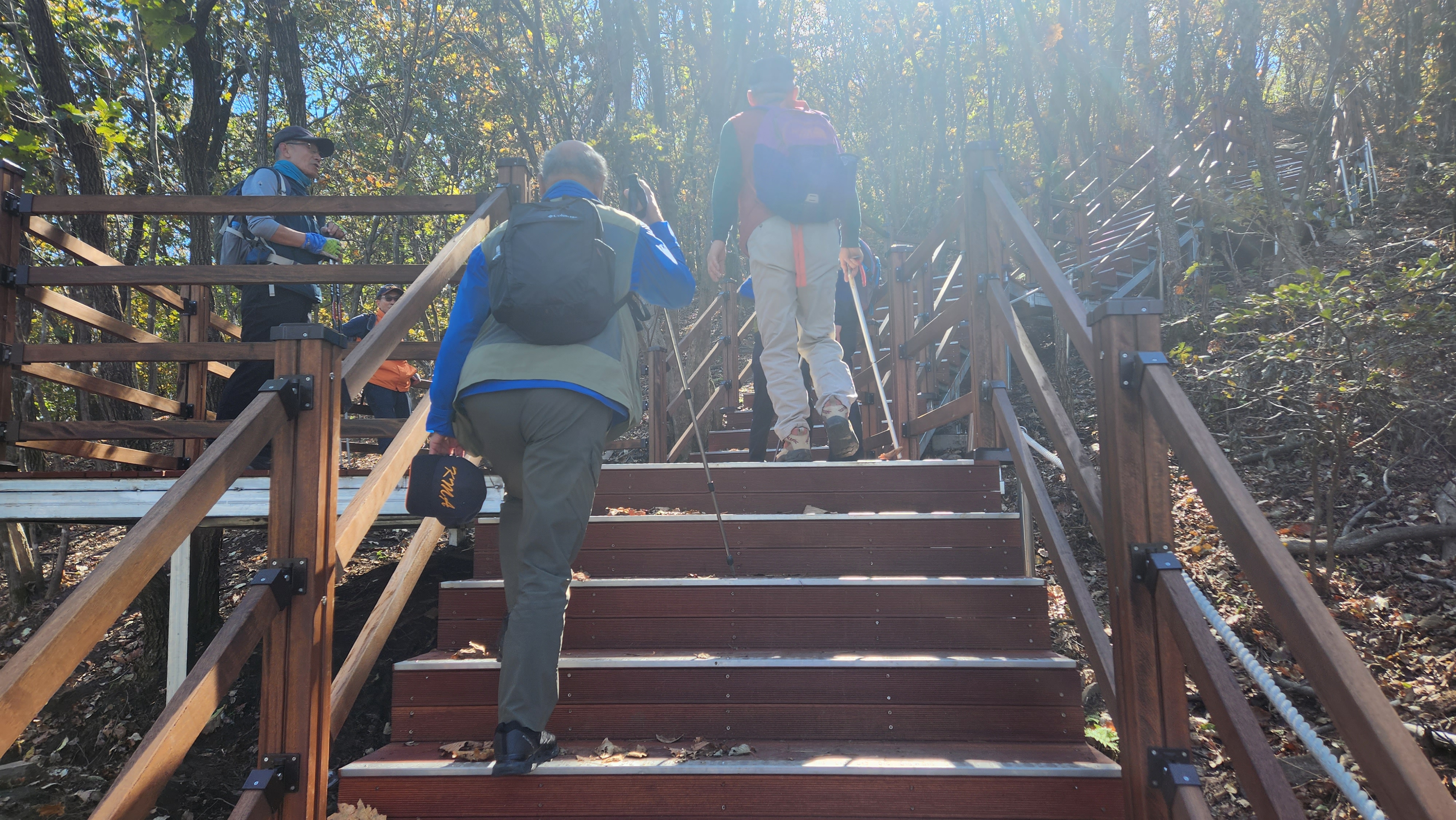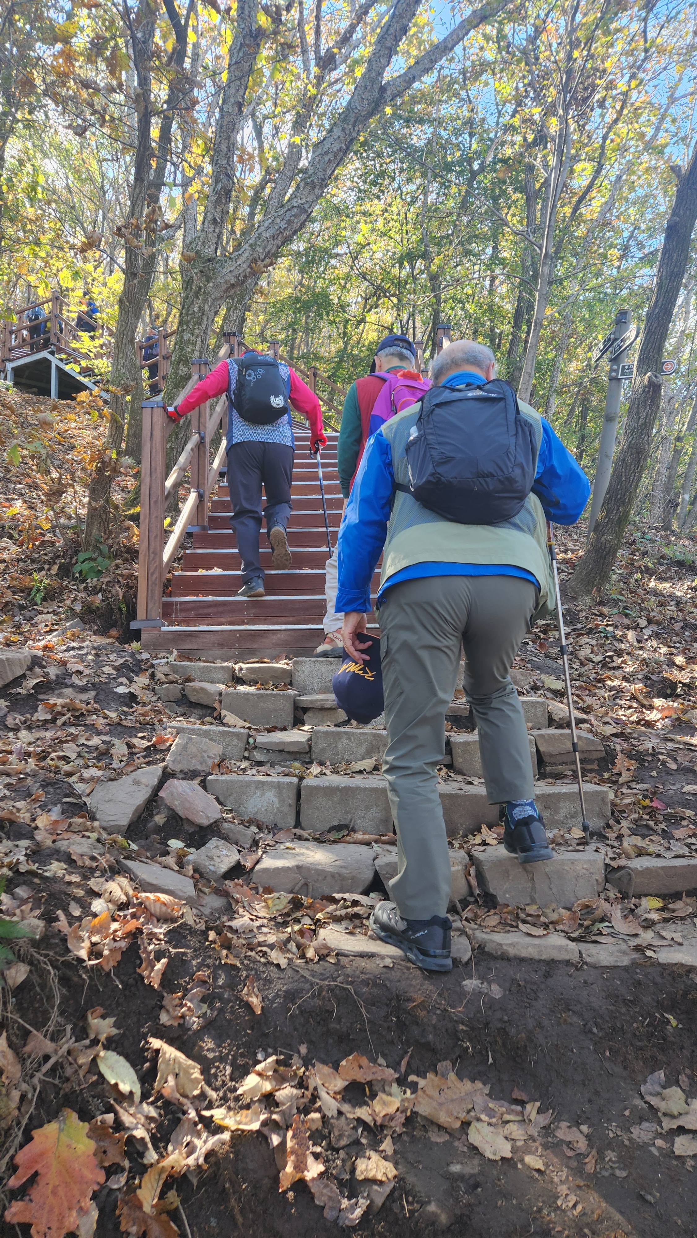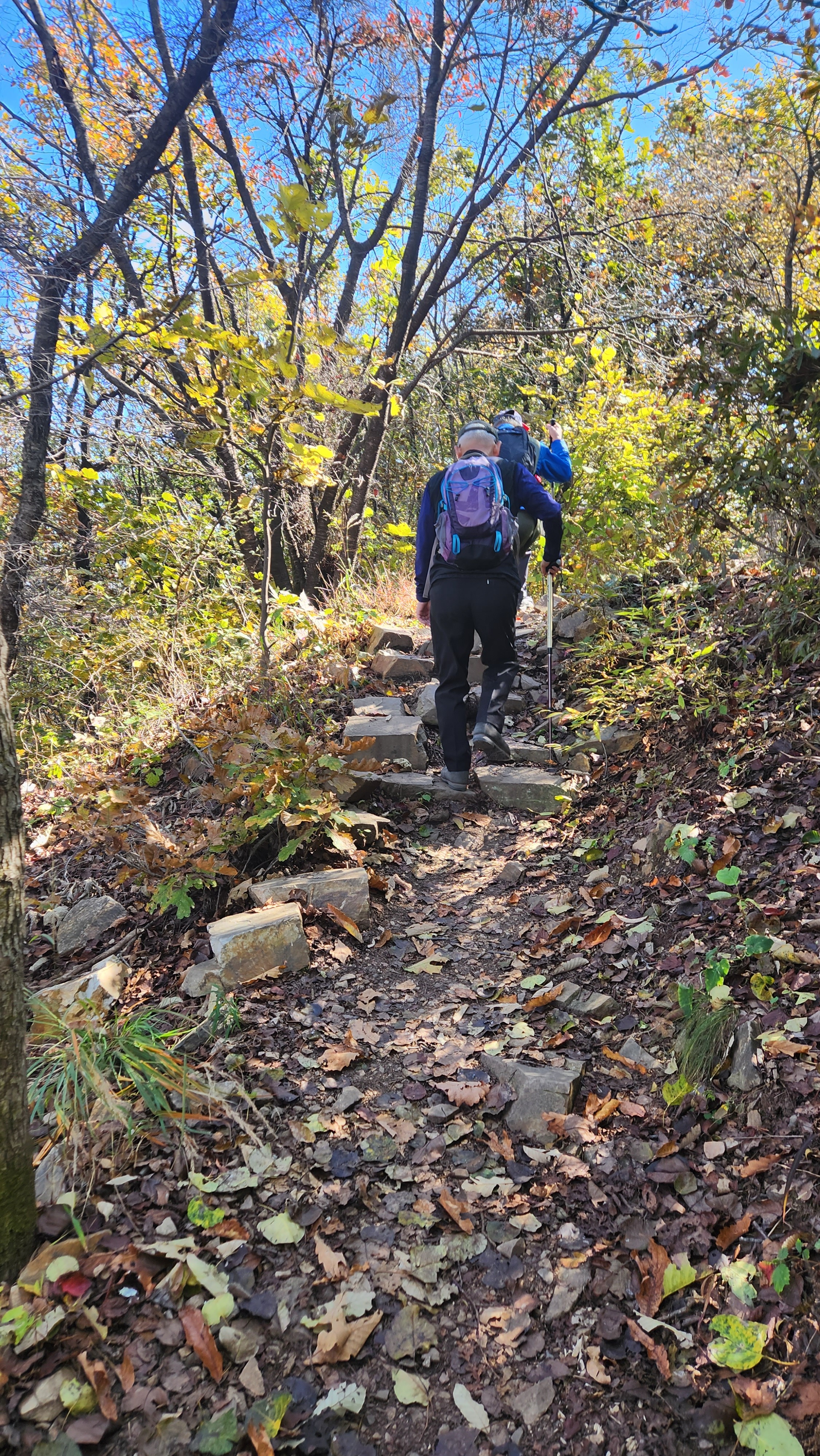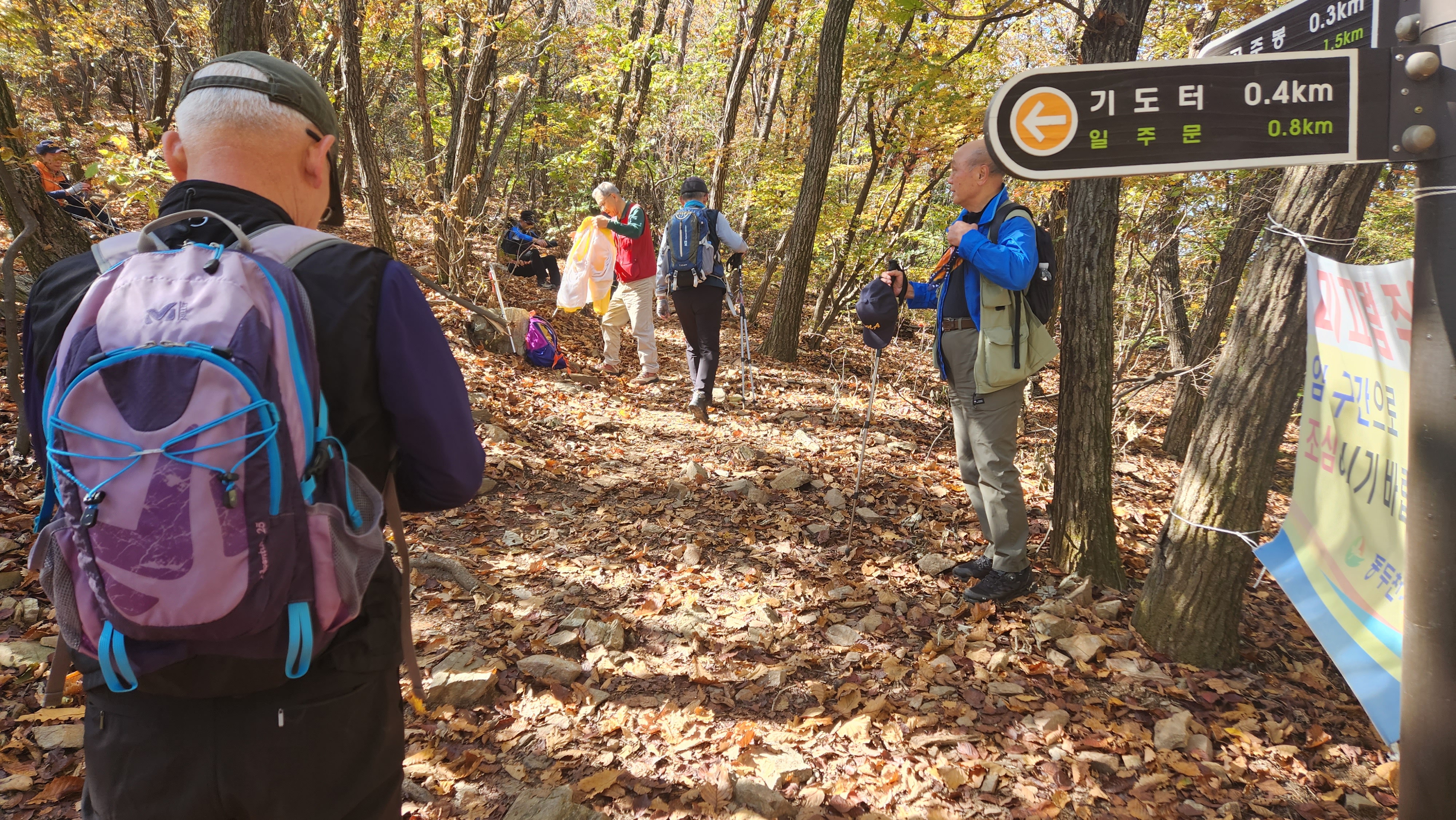 이찬철 동문은 성유경, 김홍찬 회장과는 인연이 깊다. 둘이서 반갑게 인사를 나누웠다. 이찬철 동문은 소요산 근처에 있는 처형의 밭(100평)에 사과나무 10그루를 자비로 심어주기 위해 이곳에 왔다고 하였다. 오늘 산행은 난이도가 높은 힘든 산행이었다. 그럼에도 불구하고 회원들은 힘든 내색없이 모두 밝은 표정들이었다. 단풍는 아직 소식이 없지만 내주 이후에는 화려한 색갈로 수놓을 것으로 보인다. 노년에 동기생들과 함께 여인동락하면 즐거움이 가득하고 행복이 배가된다. 대열동호회 중에서 가장 힘든 직책을 수행하고 있는 김홍찬 회장이 정말 자랑스럽고 존경스럽다.