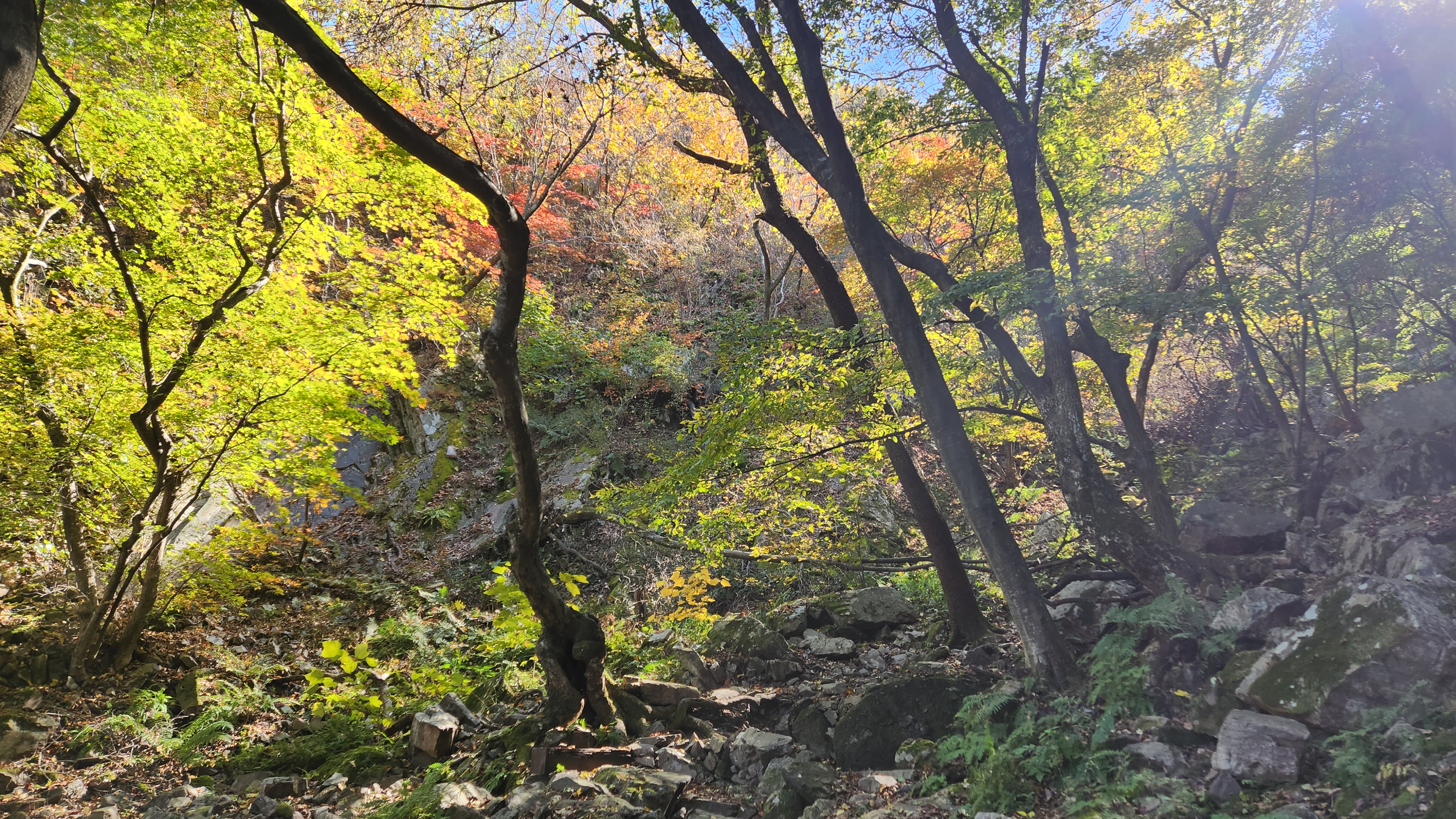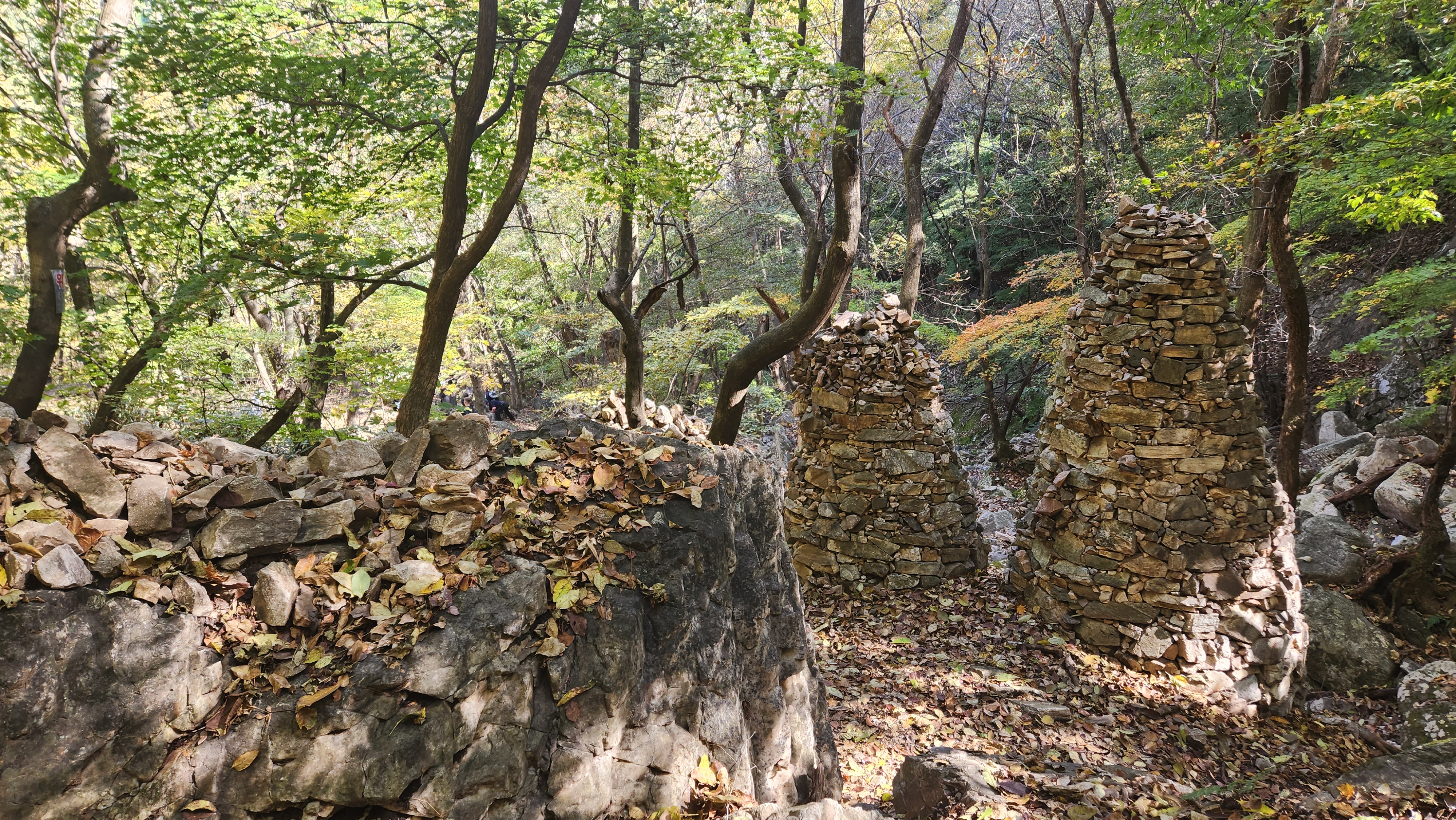대열등산동호회 10월 산행은 동두천 소요산이다. 7년만에 찾는 산행이다. 서화담 양봉래와 매월당 김시습이 자주 소요하였다 하여 소요산이란 이름으로 불리게 되었다. 소요산은 하백운대(440m), 중백운대(510m), 상백운대(559m), 나한대(571m), 의상대(587m), 공주봉(526m)의 여섯 봉우리가 원형을 이루고 있으며 주봉은 상백운대(559m)다. 계절 따라 경치가 아름다워 예부터 경기의 소금강이라 일컬어진다. 이번 산행에 9명이 참가하였다. 소요산역에 오전 10시에 집결한 후 원효폭포로 향했다. 이태조행궁지,자재암 불교문화유산안내소, 일주문을 통과하면 원효폭포와 원효굴이 나온다.