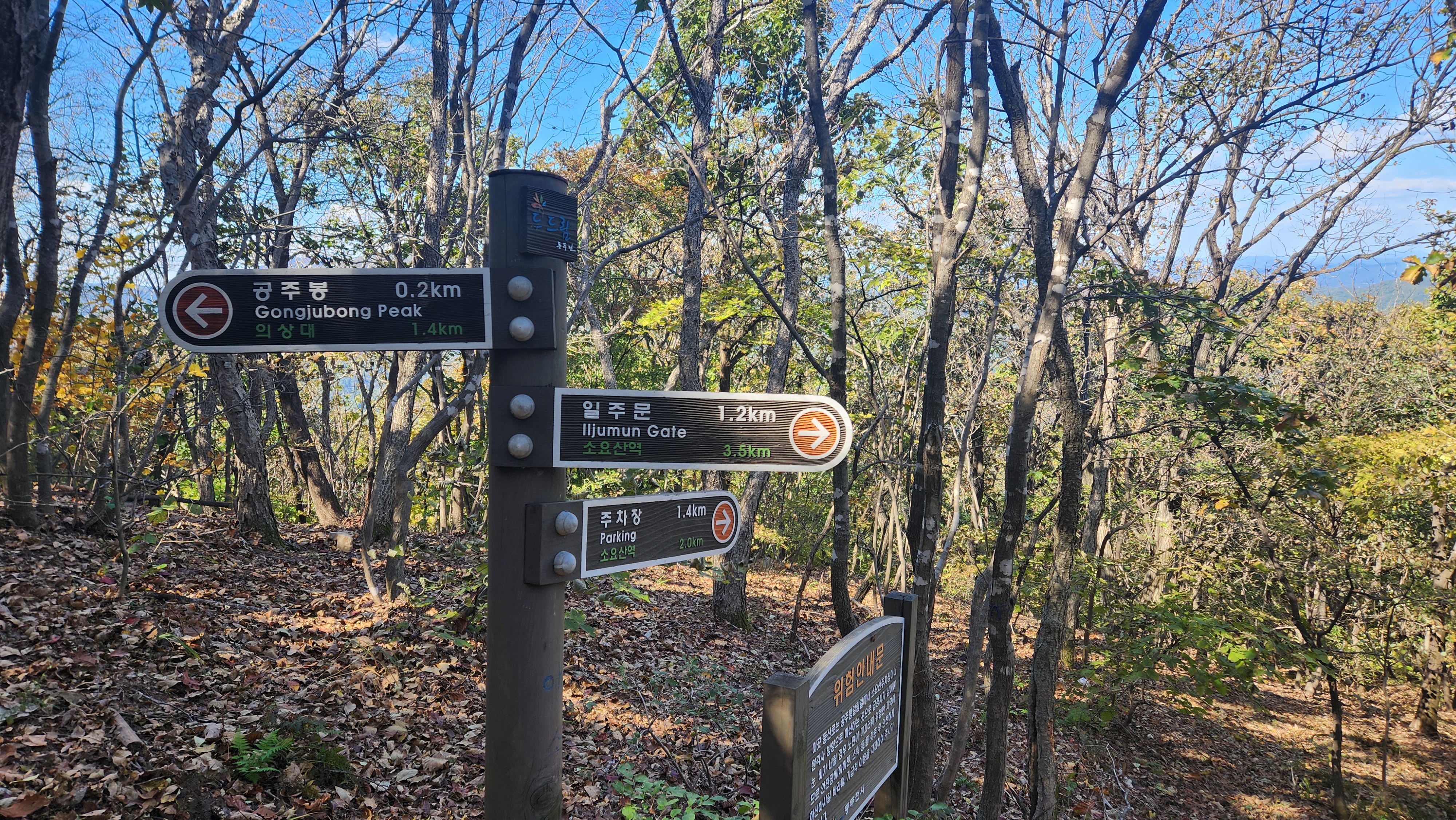 왼쪽 방향은 자재암, 오른쪽은 구절터, 공주봉 방향