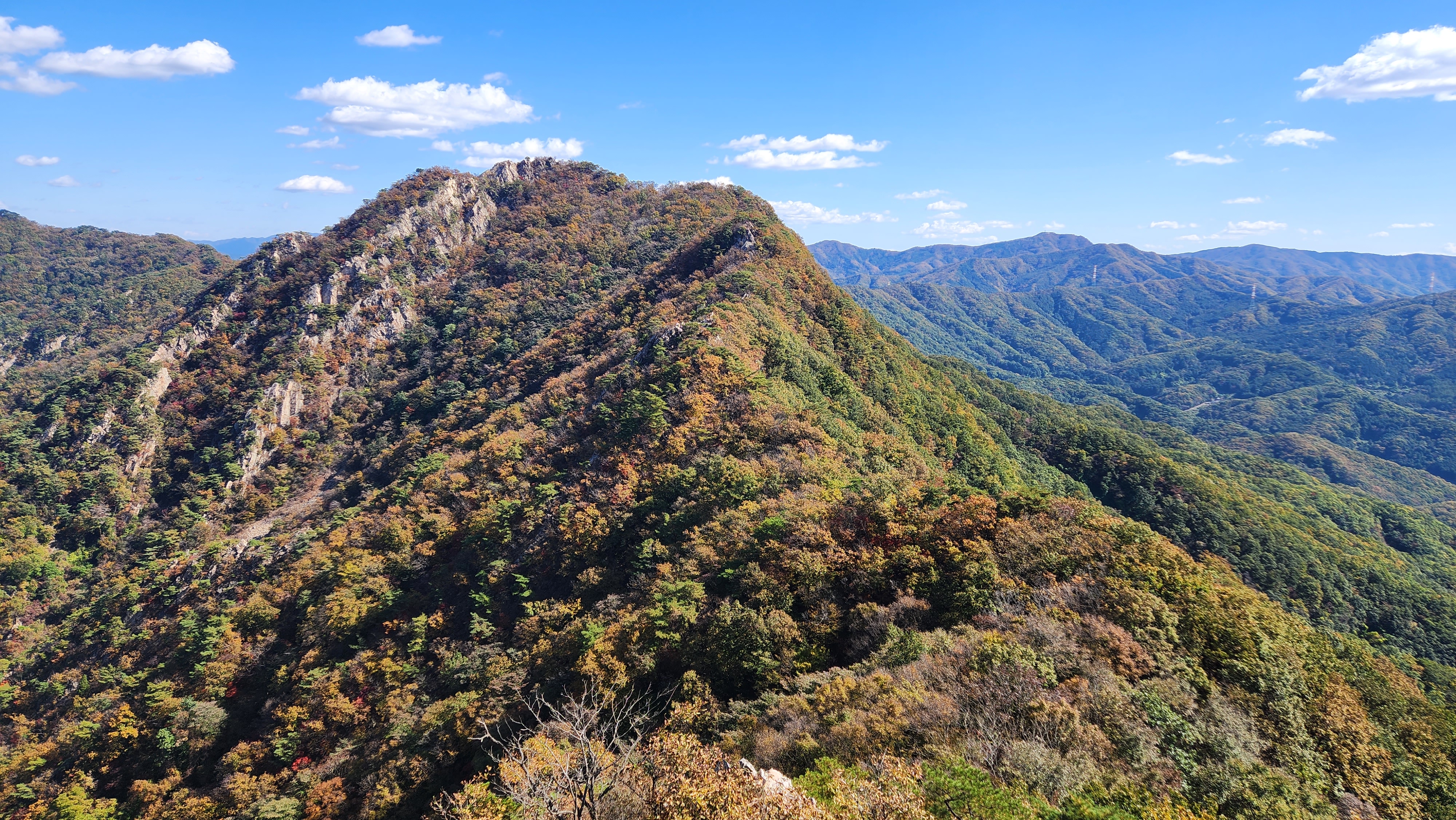 힘들었던 순간은 어느새 사라지고 그림처럼 펼쳐지는 조망이 나의 마음을 사로잡는다. 북쪽 전망을 제외하고 시야가 확터진다. 북한산, 도봉산 수락산, 불곡산 등이 한눈에 들어오고 동두천시와 양주시 일대가 파노라마처럼 아름답게 펼쳐진다. 전망이 백미다. 소요산이 군사적으로 매우 중요하다는 것을 느꼈다. 소요산은 6.25 전쟁시 국군 7사단 1연대가 배치되어 있었다. 북한군은 제1군단 예하 4사단과 전투를 수행했지만 대전차무기가 없는 상황에서 속절없이 무너졌다. 정상에서 30분 동안 머무르면서 각자 가지고온 간식들을 서로 나눠 먹는 재미가 쏠쏠하였다.