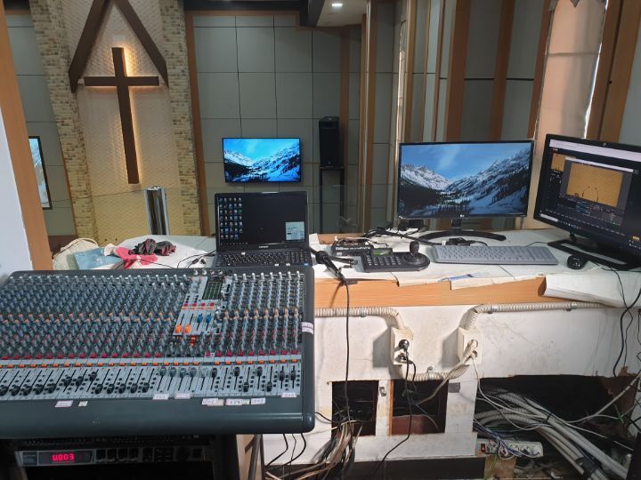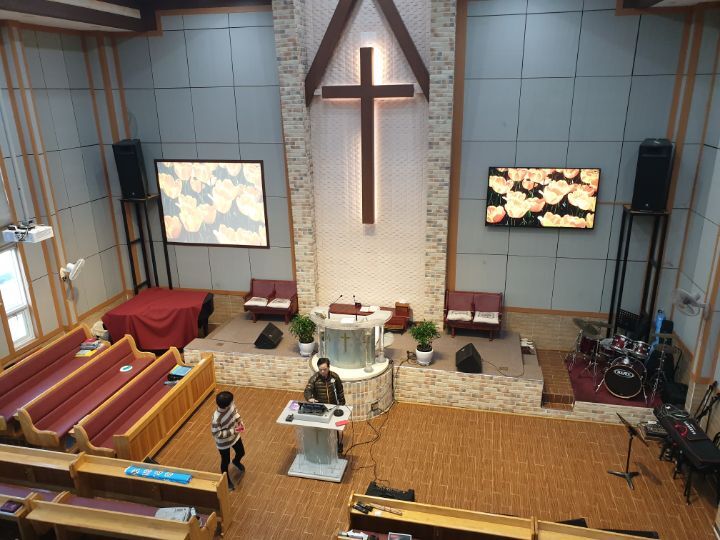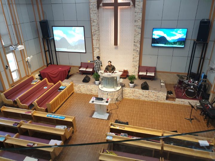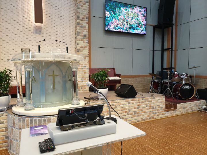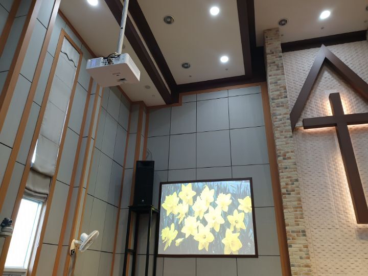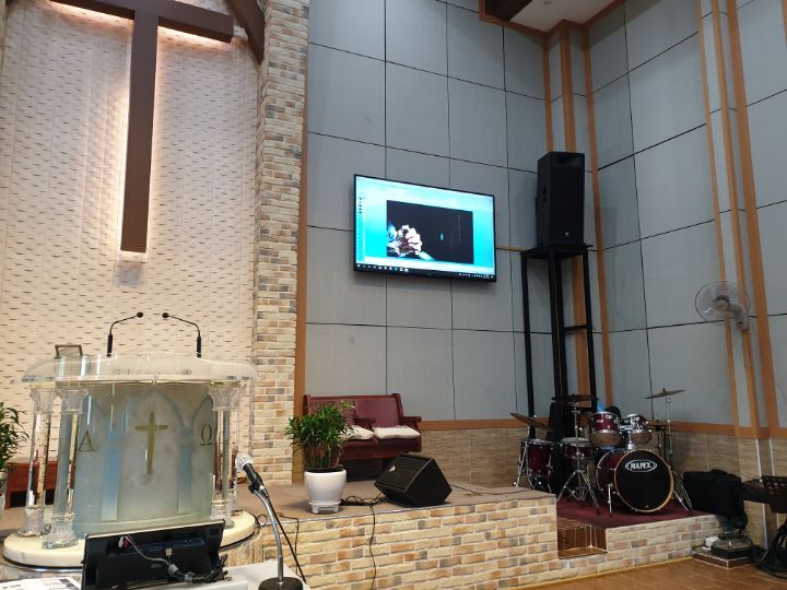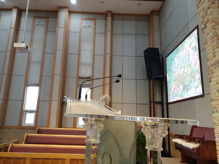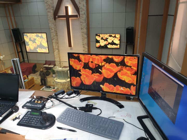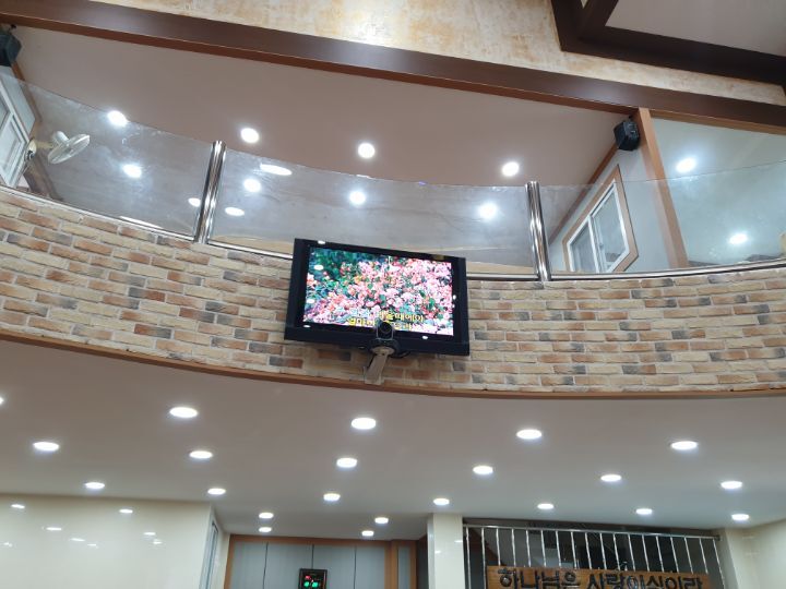 교회 프로젝터설비 86인치TV설비 카메라설비(유듀브 실시간 라이브방송 용) 음향케이블교환까지 완벽하게 설비하였습니다