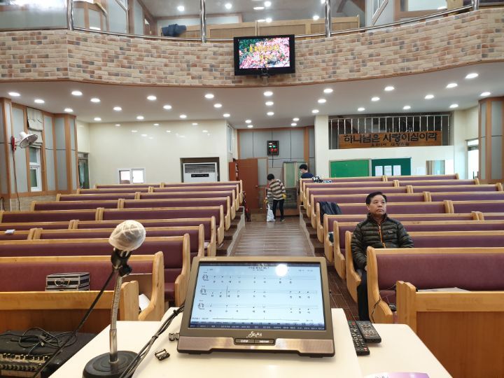 어려운 시기에 성도분들과 함께 큰맘먹고 음향과 프로젝터 86인치TV 방송용 카메라까지 설비하였습니다 ~