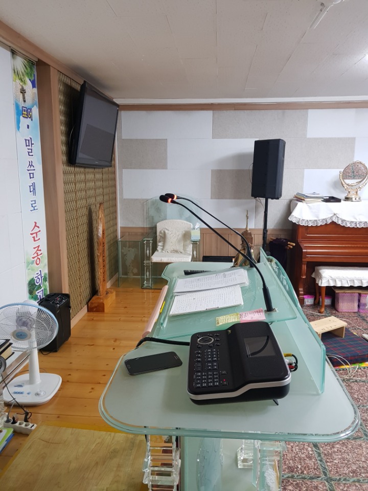 시골교회라 음향이 노후되서 소리에 이상이 생겨 이번에 파워엠프및믹서 그리고 스피커밎 강대상마이크 등 선들을 교환해 드리고 왔읍니다