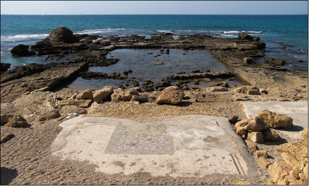 가이사랴의 헤롯 왕궁터의 바닥에서 발굴된 모자이크 바닥