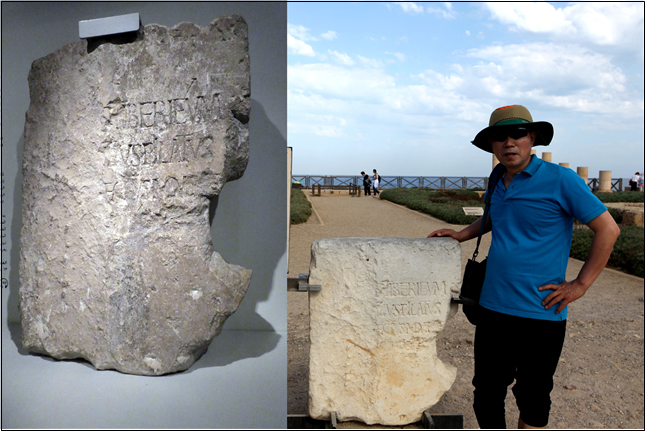 본디오 빌라도가 유대 총독으로 임명된 것을 알리는 비석으로 왼쪽은 진품이고 오른쪽은 복제품이다.