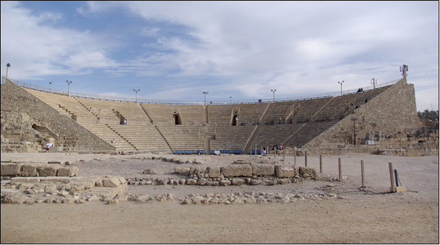 무대 중앙의 주인공을 볼 수 있도록 설계되어 있다. 공연이나 연극 음악회를 관람하는 관객들을 위하여 지중해에서 불어오는 시원한 바람을 맞이하면서 관람할 수 있다. 그러나 비잔틴 시대에는 무대 아래를 개조하여 요새로도 사용하였으며, AD. 640년 이슬람군이 침공한 이후, 가이샤라는 정치적, 경제적 의미를 상실하게 되었다. 주민들 대부분은 떠나고, 점점 작은 마을로 변해가고 방치된 것이다.