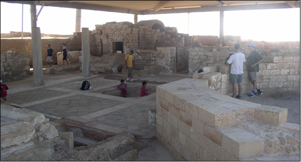 가이사랴의 공중목욕탕의 유적지로 바닥에 모자이크가 있다