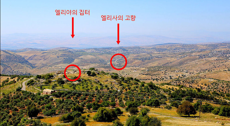 엘리야 언덕에서 본 엘리야 집터와 엘리사의 고향