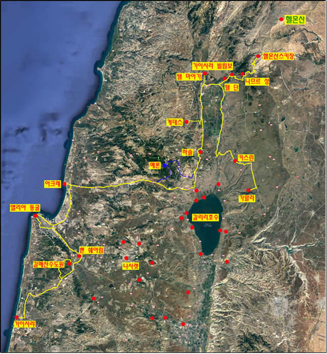 이스라엘 성지순례 루트를 공개합니다. <참고 : 지도 출처 Google Maps>
