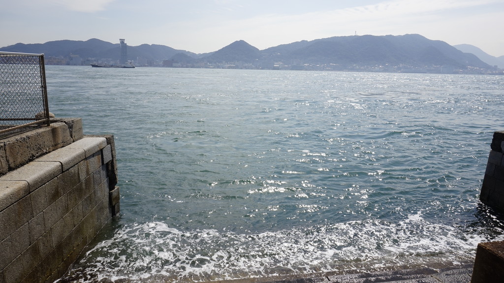 멀리에 있지 않았다. 아카미신궁 정문을 내려와 신호등을 건너면 간몬해협 바다다. 그 곳에 작은 공원이 있고,