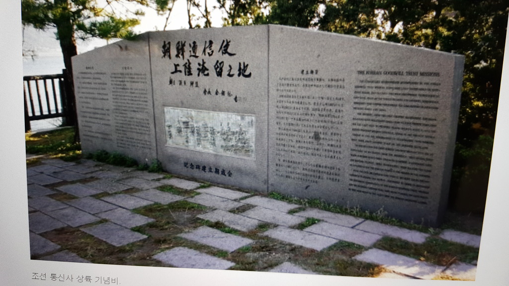 조선통신사들이 일본에 상륙했던 사실을 기념하기 위해 세운 기념비이다. 일본측에서 세웠는지, 왼쪽부터 글을 읽는 우리들의 습관대로 통신비를 살펴보니, 일어-한국어-중국어-영어 순서로 기념비를 세운 취지를 써놓았다."일본과 조선과의 평화 외교 - 선린우호를 위해 이 비를 세운다"고 쓰여있었다.