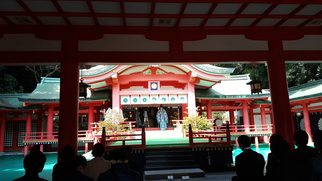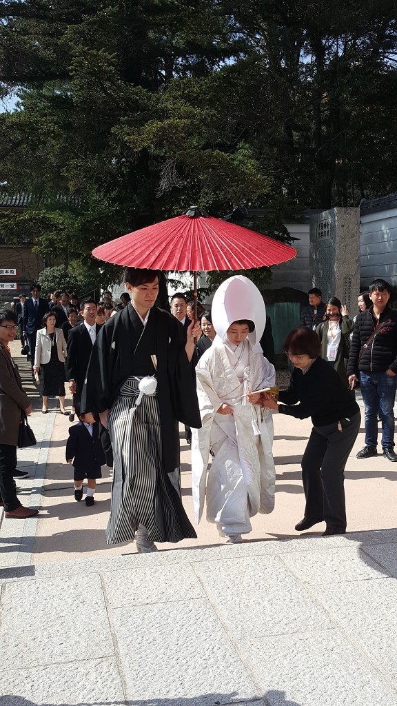 빨간 양산을 쓰고 있는 것은 또 무엇을 의미하는지? 아카미 신궁도 결혼식 풍경도 한국에 없는 이색적인 모습이라