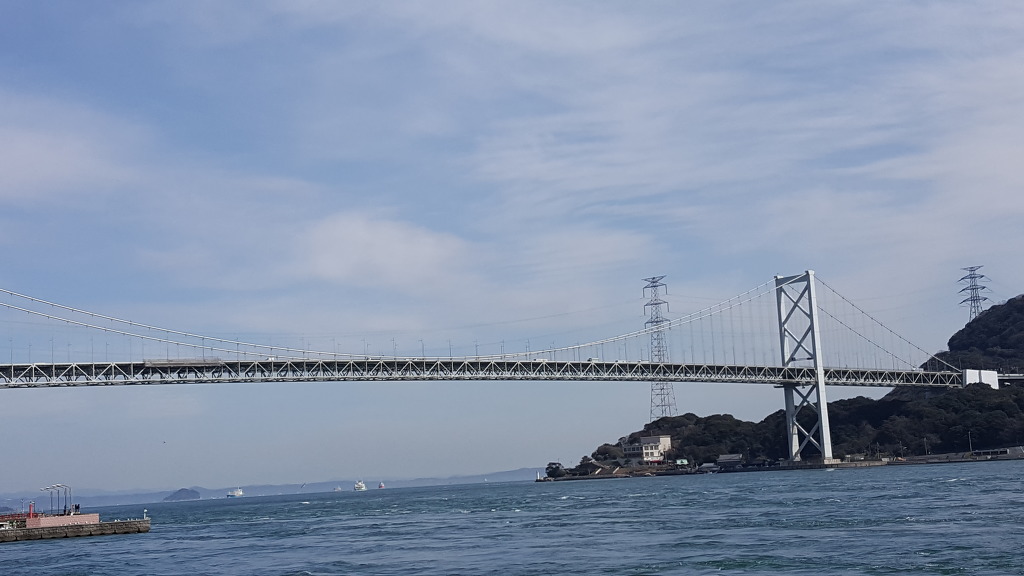 우리는 후쿠오카 공항에서 내려 하카타역으로 이동했다. 공항에서 하카타까지 버스로 25분 정도 걸렸던 것 같다. 하카타역에서 JR을 타고 고쿠라역까지 이동했다. 한국에서 미리 구입해왔던 큐슈 5일 기차 자유이용권으로는 고쿠라까지밖에 사용이 불가능했다. 시모노세키는 큐슈섬에서 바다를 하나 건너 혼슈 섬에 있기 때문에 그곳까지는 기차 이용이 불가했던 것. 위의 사진처럼 큐슈와 혼슈 섬은 칸몬대교가 놓여있어서 승용차나 자전거, 전철 또는 도보로 건널 수는 있다. 우리는 시모노세키까지 전철을 타고 이동했다. 모지코항에서 시모노세키 가라토항까지 배로 5분이면 된다는데, 지하철은 50분쯤 걸린 것 같다. 말이 전철이지, 마치 우리나라 무궁화 열차를 탄 것 같은 느낌이었다. 전철 안에 화장실도 있었으며. 네명이서 마주 앉을 수 있도록 좌석 배치가 되어있다. 큐슈에서 혼슈로 이동하는 사람들이 많은 모양이다. 전철 안에는 사람들이 북적인다. 전철이 시골길을 한 참 달리더니 바다위를 건너 시모노세키 역에 우리를 내려주었다. 시모노세키는 매우 한적한 시골마을 같은 인상을 주었다. 부산에서 배(국제여객선)를 타면 하루밤 만에 시모노세키에 내린다는 말을 들은 적이 있다. 그런 여행길을 선택하는 게 시모노세키로의 여행길은 훨씬 효율적일 것 같다. 관부연락선을 타고 오래 오래 바다를 내다보며 날아가는 갈매기들에게 말도 걸어보고, 우주와 자연을 사유하면서 여유있는 여행을 선택하는 것도 한 방법이리라.