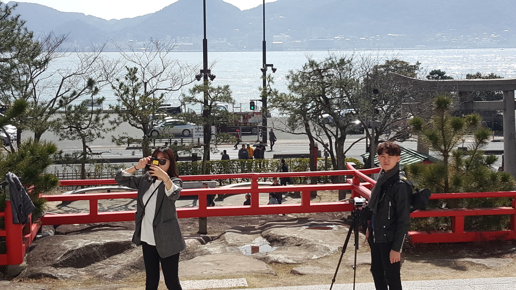 젊은이 두 명이 통신사들의 닻 앞에서 바다를 보며 왼쪽 손을 높이 쳐들고 있다. 주먹을 꽉 쥔채..... 그들은 일본 바다를 보면서, 무엇을 생각하며 무엇을 가슴 속으로 외치고 있는지 궁금하다. 한국말을 쓰는 것으로 보아서 한국인들일텐데..... 무슨 목적으로 그곳에 여행을 왔는지? 묻고 싶었다. 세계 속으로 뻗어나가는 대한의 젊은이가 되자고 다짐하고 있을지도 모른다. 그들의 앞날에 하늘의 축복이 함께 하길 비는 마음이 간절해지는 순간이었다.