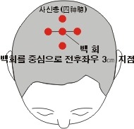 이밖에도 사혈 치료점에는 <백회>와 <사신총>을 비롯한 머리의 함몰된 부분의 사혈요법 있다.
